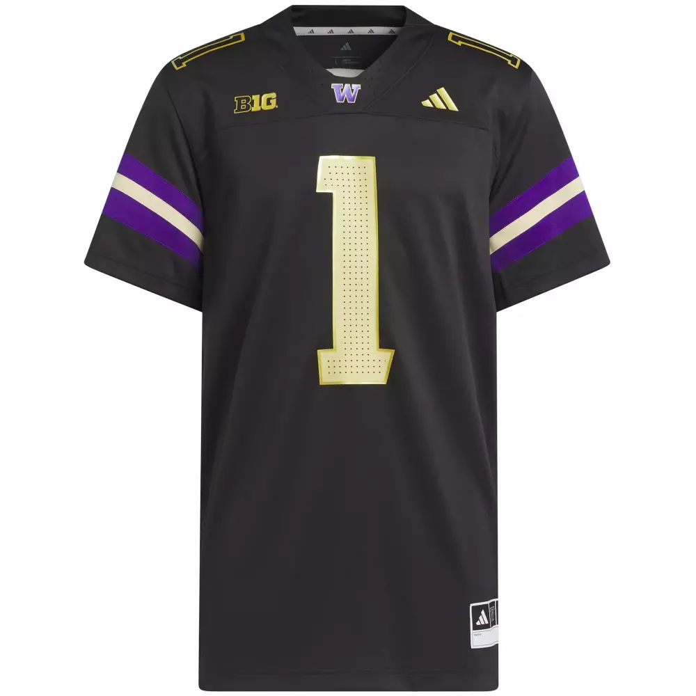1 washington huskies adidas premier jersey white 1;1 washington huskies adidas premier strategy jersey black;25 washington huskies adidas honor support premier strategy jersey purple;washington huskies adidas 1991 national championship anniversary icon football jersey purple;washington huskies gameday greats unisex lightweight collegiate men s basketball nil pick a player fashion jersey black