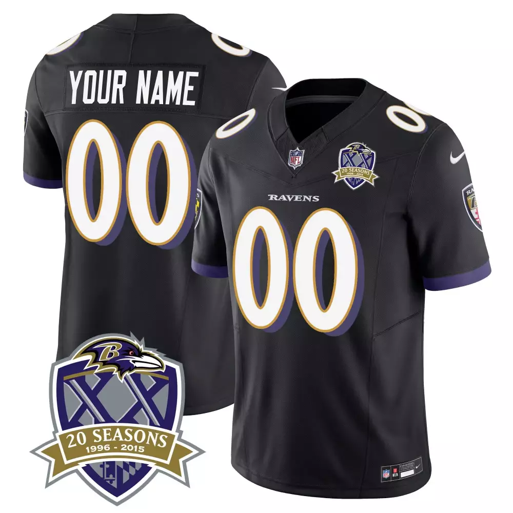 20th Season Patch Baltimore Ravens Youth Custom Jersey | Baseball Style | Stitched Fan Gear | For Men, Women & Youth