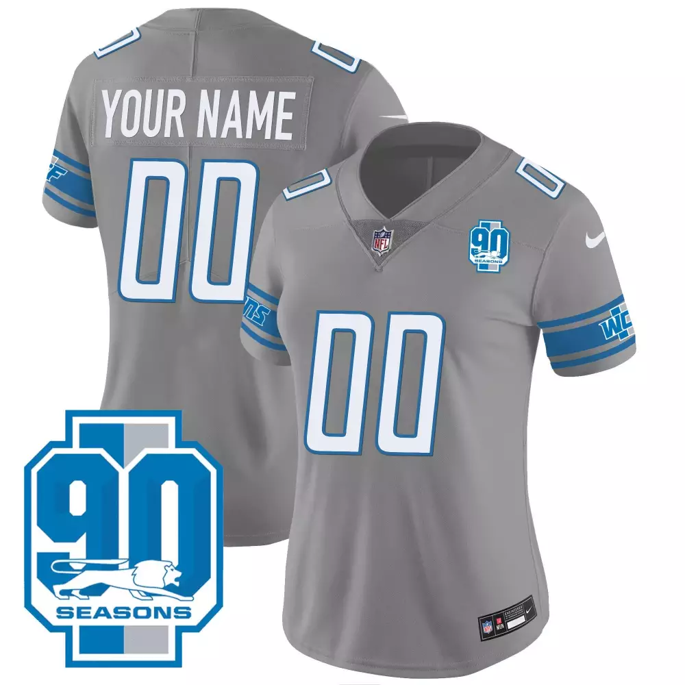 90th Year Michigan Patch Custom Vapor Jersey | Gray Stitched for Detroit Lions | For Women, Men & Youth