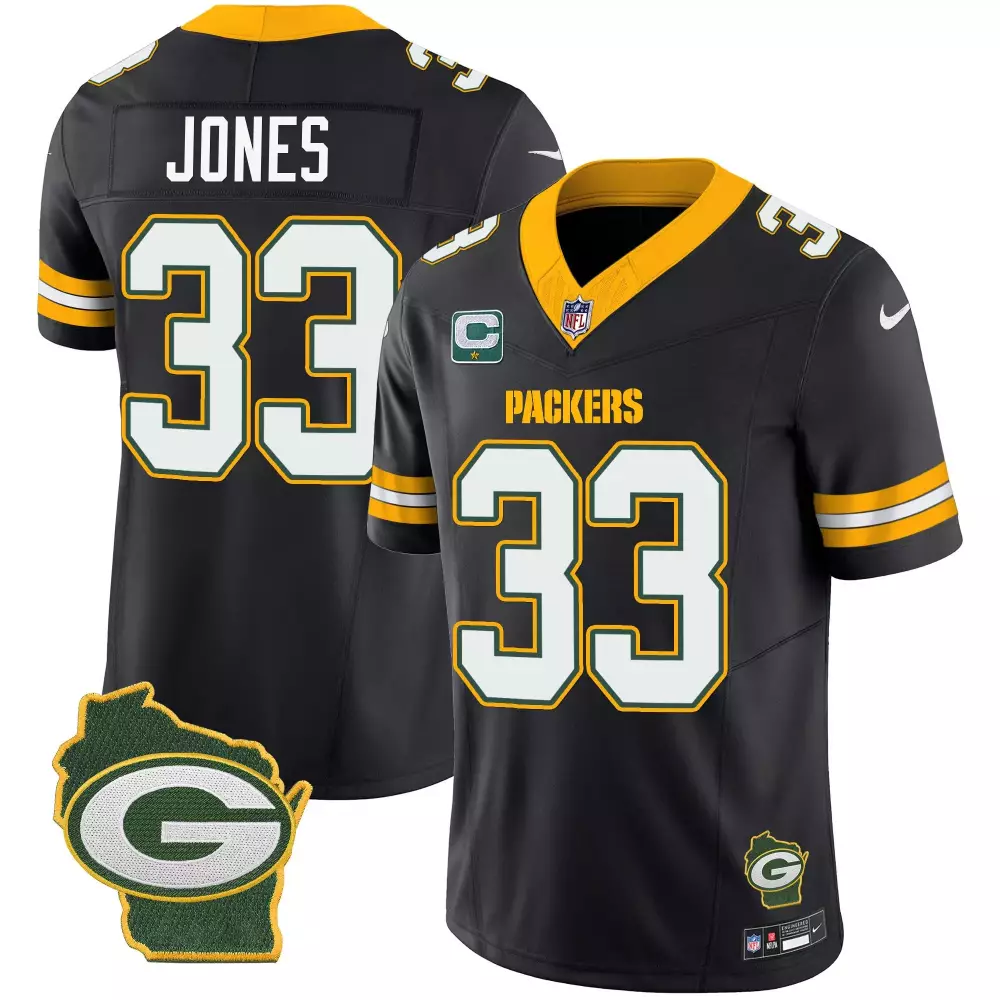 Aaron Jones Green Bay Packers Black Men’s Jersey | 13 Time World Champions Home Patch V2 | Vapor Stitched Fan Gear | For Men, Women & Youth;Aaron Jones Green Bay Packers Black Men’s Jersey | Home Patch Vapor | Stitched Fan Gear | For Men, Women & Youth;Aaron Jones Green Bay Packers Black Men’s Jersey | Home Patch Vapor V2 | Stitched Fan Gear | For Men, Women & Youth;Aaron Jones Green Bay Packers Black Men’s Jersey | Home Patch Vapor V3 | Stitched Fan Gear | For Men, Women & Youth;Aaron Jones Green Bay Packers Black Men’s Jersey | John Madden Home Patch Game Jersey | Stitched Fan Gear | For Men, Women & Youth