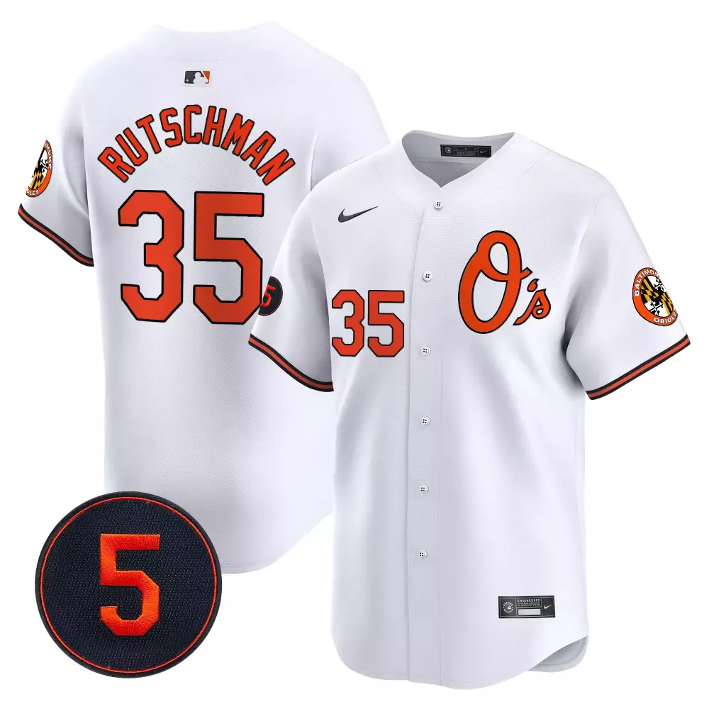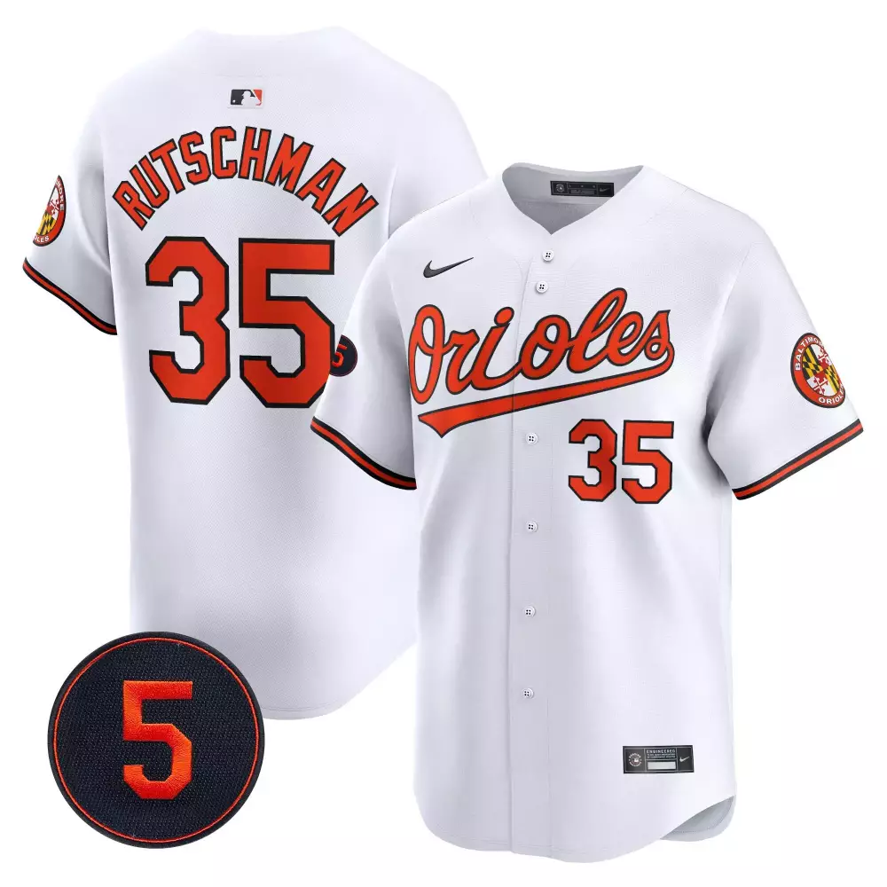 Adley Rutschman White Men’s Orioles Robinson Patch Cool Base Jersey | Vapor Premier Limited Edition | For Men, Women & Youth