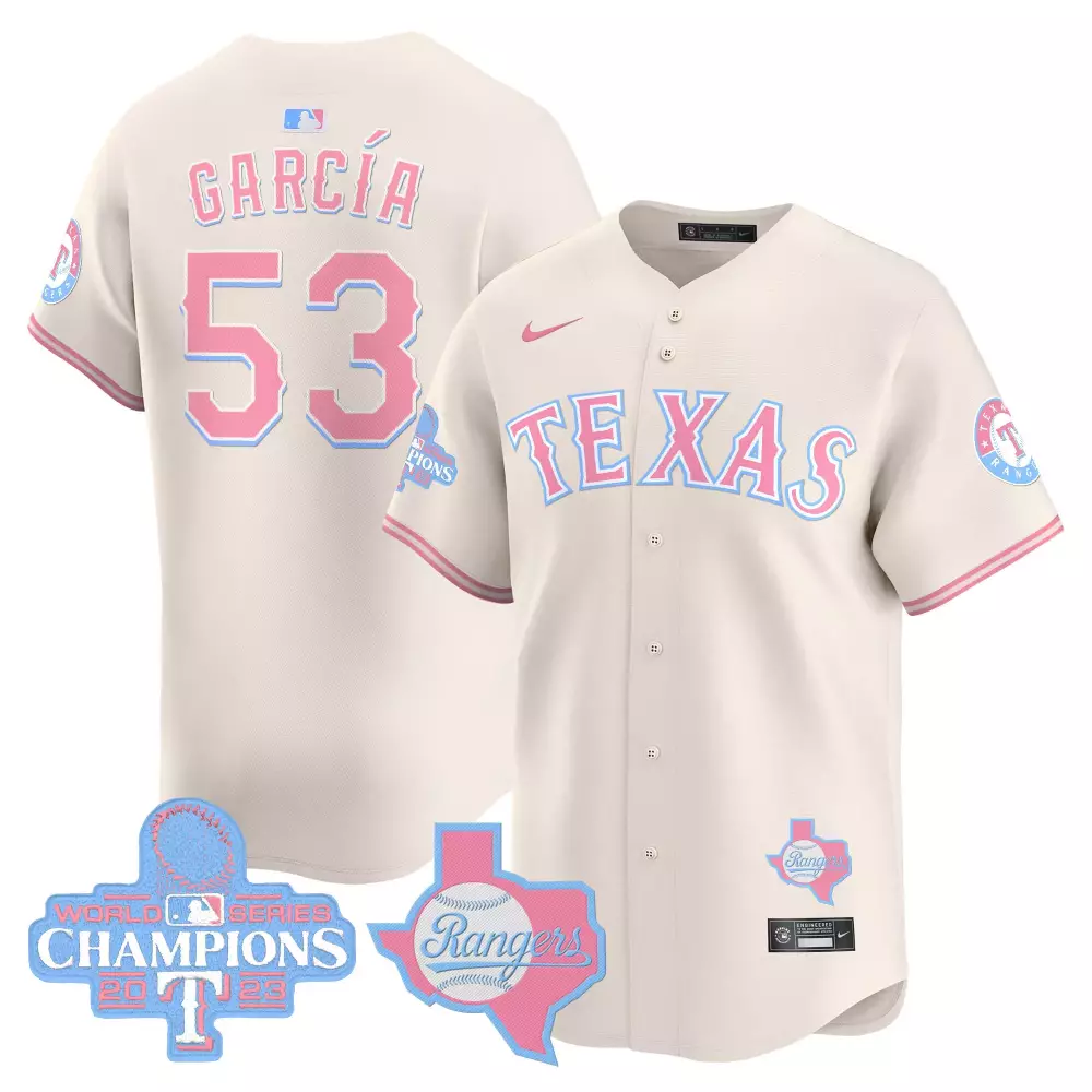 Adolis Garcia Texas Rangers Black Women’s Mexico Vapor Premier Limited Jersey | All Stitched | Fan Gear | For Women & Youth;Adolis Garcia Texas Rangers Bubblegum Pink Vapor Premier Jersey | All Stitched | Unisex Fan Gear | For Men, Women & Youth;Adolis Garcia Texas Rangers Bubblegum Pink Vapor Premier Jersey | Limited Edition Stitched for Men, Women & Youth;Adolis Garcia Texas Rangers City Connect Jersey | 2023 World Series Champions | All Stitched | Fan Gear for Men, Women & Youth;Adolis Garcia Texas Rangers City Connect Jersey | 2023 World Series Champions | All Stitched | Fan Gear for Women