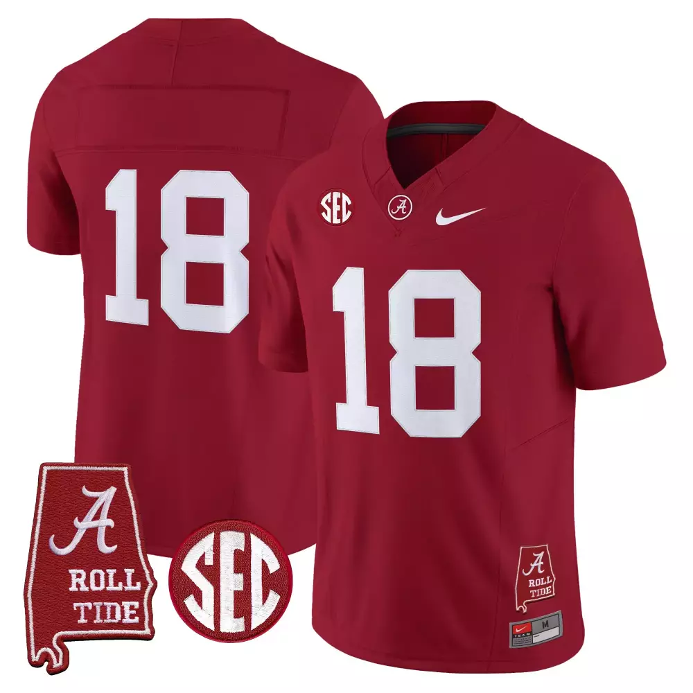 Alabama Crimson Tide 2025 Red Stitched Name Patch Jersey | SEC 18 | Fan Gear for Men, Women & Youth