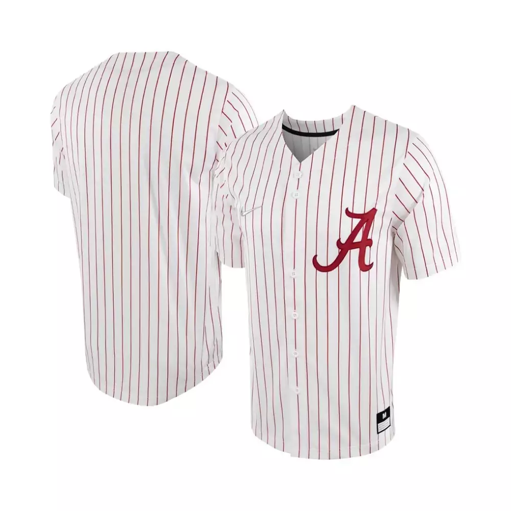 Alabama Crimson Tide Nike Pinstripe Replica Full Button Baseball Jersey | White & Crimson | For Men, Women & Youth