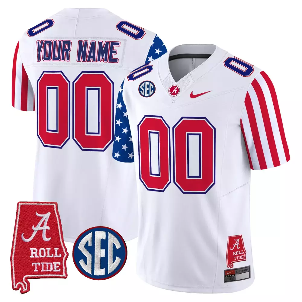 Alabama Crimson Tide White All Stitched Jersey with Name Patch Men’s 2020 | National Champions | Classic Fan Gear | For Men, Women & Youth;Alabama Crimson Tide White Custom Jersey with American Flag Sleeves SEC Patch Men’s | Stylish Fan Gear | For Men, Women & Youth;Alabama Crimson Tide White Custom Jersey with Patches | Your Name & Number 00 | Unique Fan Gear | For Men, Women & Youth;Alabama Crimson Tide White Custom Stitched Jersey with Name Patch for Men 2023 | Authentic Fan Gear | For Men, Women & Youth;Alabama Crimson Tide White Gold All Stitched Jersey Name Patch Turner 15 National Champions 2023 | Premium Fan Gear | For Men, Women & Youth