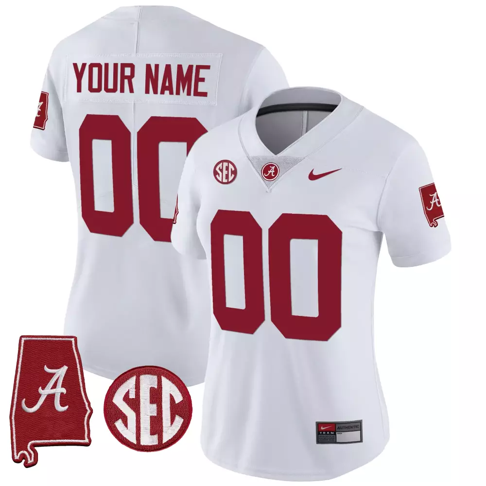 Alabama Crimson Tide Women’s White Stitched Jersey | Custom Name Patch 2023 | Stylish Fan Gear;Alabama Crimson Tide Women’s White Stitched Jersey | Your Name 00 with Name Patch 2023 | Game Day Gear;Alabama Crimson Tide Women’s White Vapor Limited Jersey | Stitched Alabama Map | Fan Gear for Game Day | For Men, Women & Youth;Alabama Crimson Tide Womens Gold Trim Vapor Jersey | Stitched Alabama Map Design | Limited Edition Fan Gear | For Men, Women & Youth;Alabama Crimson Tide Womens Gold Trim Vapor Jersey V2 | Stitched Alabama Map Design | Game Day Outfit | For Men, Women & Youth
