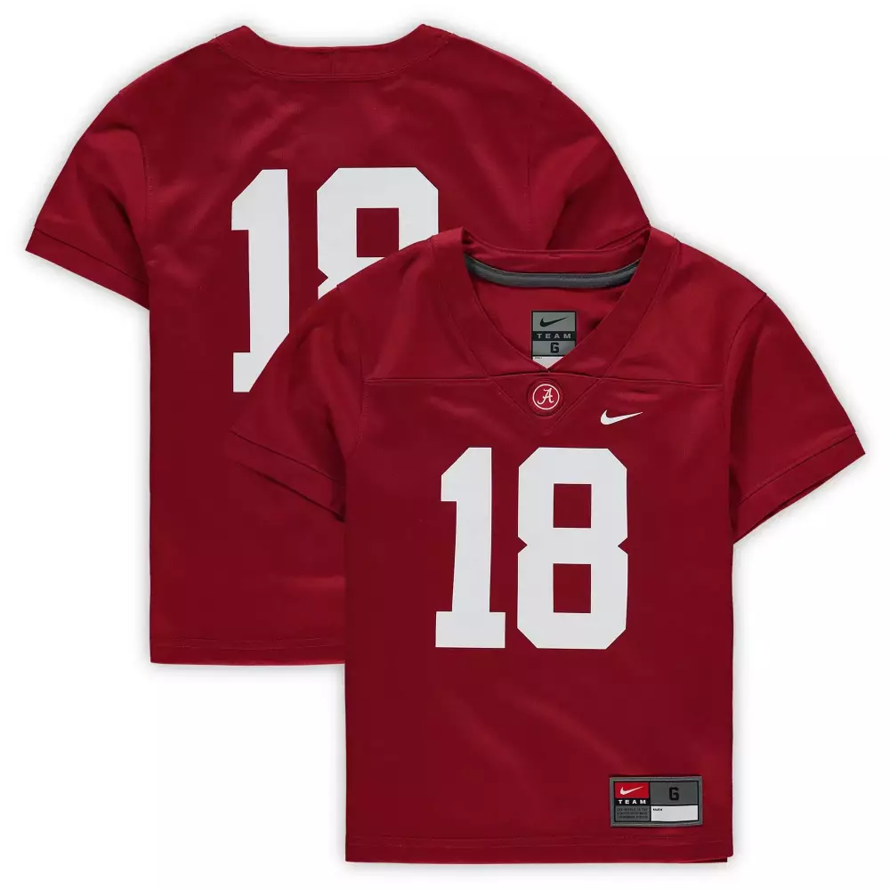 Alabama Crimson Tide Youth Jersey 1 | 2023 Red & White All Stitched Vapor | Perfect for Young Fans;Alabama Crimson Tide Youth Jersey 18 | 2023 Red All Stitched Vapor | Stylish Fan Gear for Kids;Alabama Crimson Tide Youth Nick Saban 7X Champs Gold Trim Jersey | Crimson | Stitched Fan Gear | For Men, Women & Youth;Alabama Crimson Tide Youth Nick Saban 7X Champs Gold Trim Jersey | Inverted | Stitched Fan Gear | For Men, Women & Youth;Alabama Crimson Tide Youth Nick Saban 7X Champs Vapor Jersey | Crimson | Stitched Fan Gear | For Men, Women & Youth