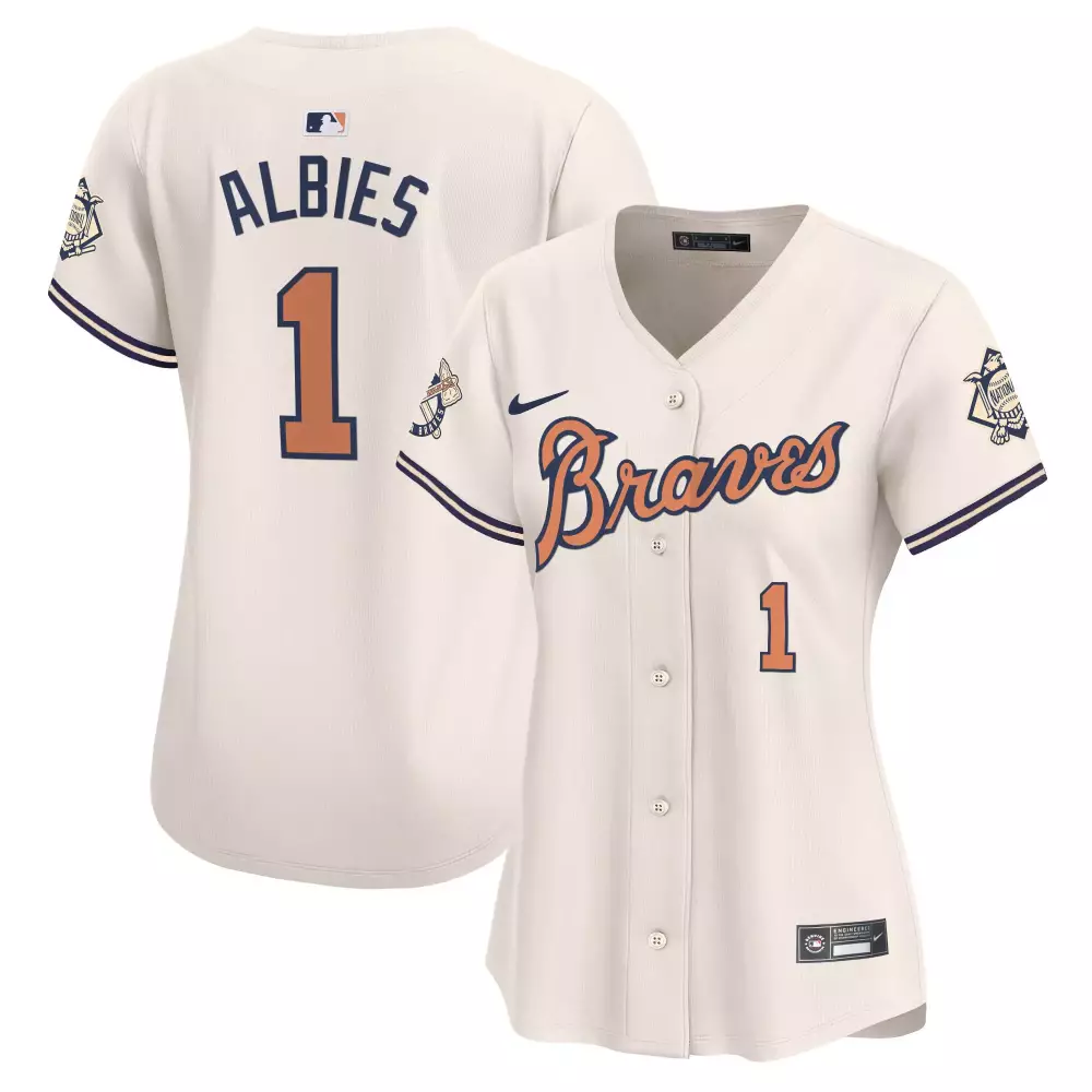 Albies Atlanta Braves 2023 Women’s Cream Stitched Jersey with Name Patch | Stylish Fan Gear | For Men, Women & Youth