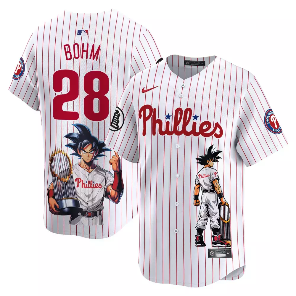 Alec Bohm Philadelphia Phillies Dragon Ball Son Goku Vapor Premier Jersey | Printed White | Limited Edition Fan Gear | For Men, Women & Youth
