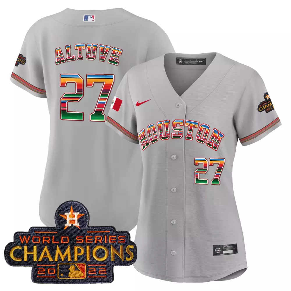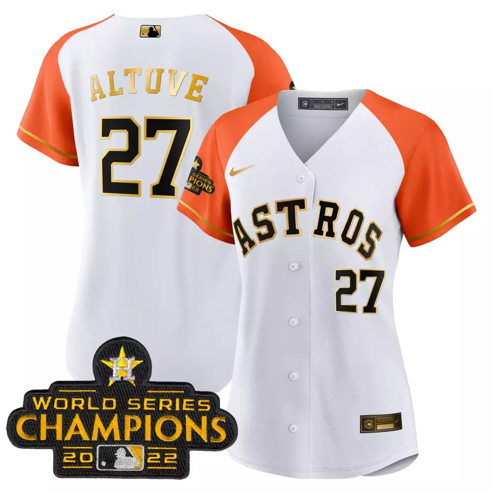 Altuve 27 Houston Astros 2022 Women’s All Stitched Vapor Jersey | Black World Champions | Limited Edition Fan Gear | For Men, Women & Youth;Altuve 27 Houston Astros 2022 Women’s All Stitched Vapor Jersey | Black World Series Champions | Limited Edition Fan Gear | For Men, Women & Youth;Altuve 27 Houston Astros 2022 Women’s All Stitched Vapor Jersey | Cactus Jack Champions | Limited Edition Fan Gear | For Men, Women & Youth;Altuve 27 Houston Astros 2022 Women’s All Stitched Vapor Jersey | Champions Patch | Replica Fan Gear | For Men, Women & Youth;Altuve 27 Houston Astros 2022 Women’s All Stitched Vapor Jersey | Gray World Series Champions | Limited Edition Fan Gear | For Men, Women & Youth