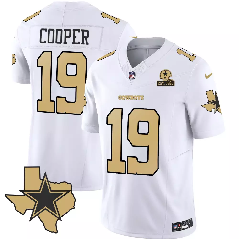 Amari Cooper Dallas Cowboys White Gold Trim Vapor Jersey | Stitched Fan Gear | For Men, Women & Youth