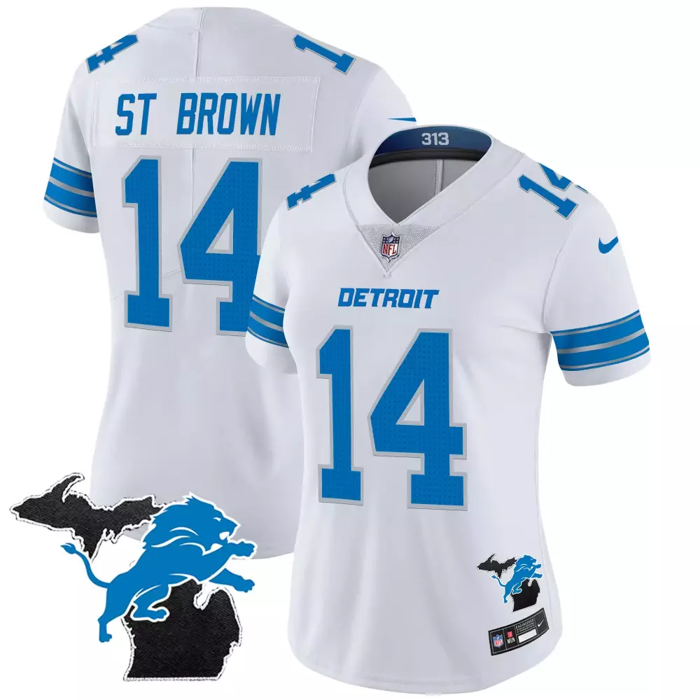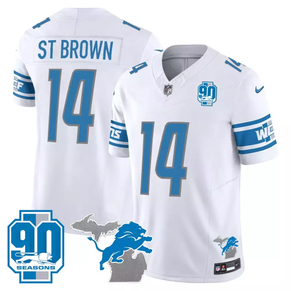 Amon-Ra St. Brown 14 Detroit Lions 2024 White Vapor Limited Jersey | All Stitched Michigan Patch | Fan Gear for Game Day | For Men, Women & Youth;Amon-Ra St. Brown 14 Detroit Lions 2024 Women’s White All Stitched Vapor Jersey | Fan Gear for Game Day | For Men, Women & Youth;Amon-Ra St. Brown 14 Detroit Lions 2024 Women’s White Vapor Jersey | 90th Season All Stitched | Fan Gear for Game Day | For Men, Women & Youth;Amon-Ra St. Brown 14 Detroit Lions 90th Anniversary White Jersey | All Stitched | Fan Gear for Game Day | For Men, Women & Youth;Amon-Ra St. Brown 14 Detroit Lions 90th Year White Vapor Jersey | All Stitched | Fan Gear for Game Day | For Men, Women & Youth