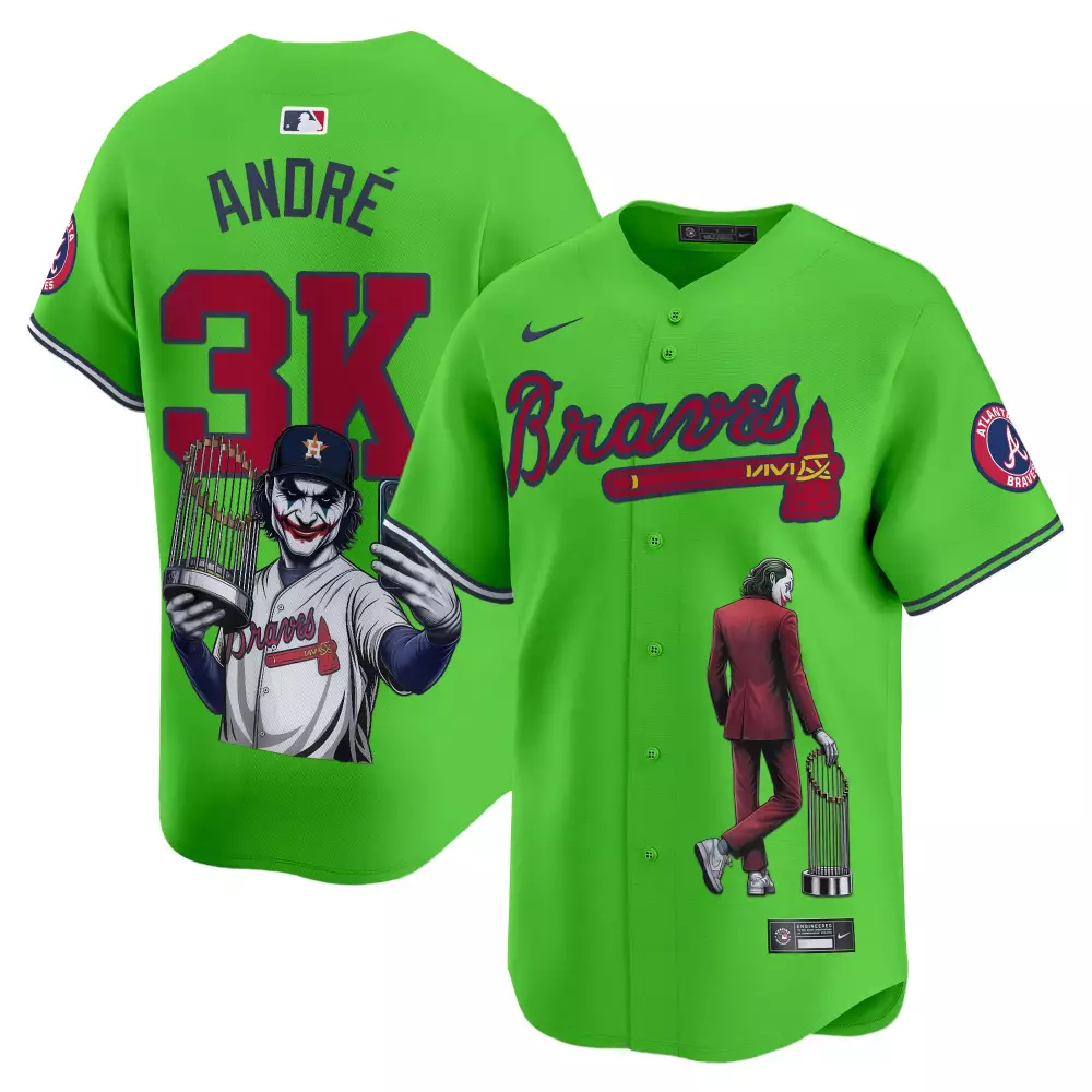 Andre Green Atlanta Braves Atliens Vapor Premier Limited Jersey V4 | All Stitched | Trendy Fan Gear for Men, Women & Youth;Andre Green Unisex Atlanta Braves Joker Vapor Premier Limited Jersey | Printed | Fun Fan Gear for Men, Women & Youth;Andre Light Blue Men’s Atlanta Braves ATLiens Peach Vapor Premier Limited Jersey | All Stitched | Fan Gear for Game Day | For Men, Women & Youth;Andre Light Blue Men’s Atlanta Braves ATLiens Vapor Premier Limited Jersey V4 | All Stitched | Stylish Fan Gear | For Men, Women & Youth;Andre Light Blue Men’s Atlanta Braves Peach Vapor Premier Limited Jersey | All Stitched | Game Day Outfit | For Men, Women & Youth