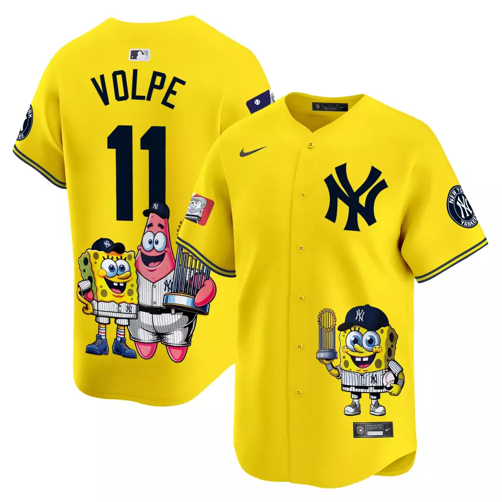 Anthony Volpe Gold Yankees Spongebob Squarepants Limited Edition Jersey | Printed Vapor Premier | Fun Fan Gear for Men, Women & Youth