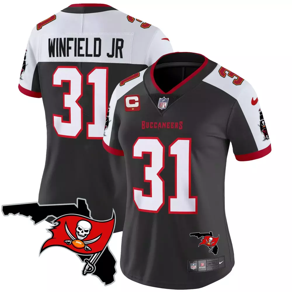 Antoine Winfield Jr. Black Alternate Women’s Jersey | Tampa Bay Buccaneers Florida Patch | Gold Trim Vapor | Limited Edition Fan Gear | For Men, Women & Youth;Antoine Winfield Jr. Black Alternate Women’s Jersey | Tampa Bay Buccaneers Florida Patch | Vapor Limited Edition | For Men, Women & Youth;Antoine Winfield Jr. Black Alternate Women’s Tampa Bay Buccaneers 2023 NFC South Champions Patch Gold Trim Vapor Jersey | Stitched Design | For Women;Antoine Winfield Jr. Black Alternate Women’s Tampa Bay Buccaneers 2023 NFC South Champions Patch Vapor Jersey | Stitched Design | Fan Gear for Women;Antoine Winfield Jr. Black Alternate Women’s Throwback Jersey | Tampa Bay Buccaneers Vapor Limited Edition | For Men, Women & Youth