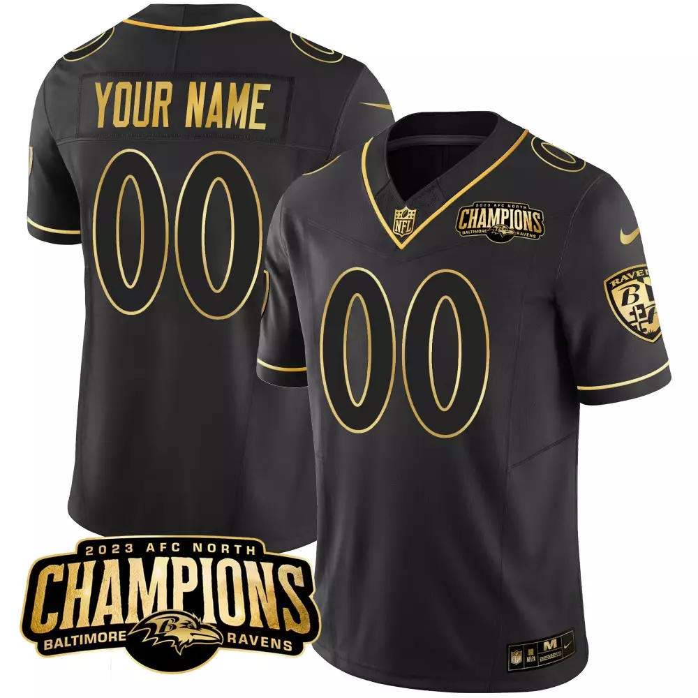 Baltimore Ravens 2023 AFC North Champions Maryland Patch Gold Vapor Custom Jersey | Stitched Fan Gear for Youth;Baltimore Ravens 2023 AFC North Champions Patch Black Alternate Youth Jersey | Vapor Limited Custom Edition | For Youth;Baltimore Ravens 2023 AFC North Champions Patch Gold Vapor Custom Jersey | Black Gold Edition | Stitched Fan Gear for Youth | For Men, Women & Youth;Baltimore Ravens 2023 AFC North Champions Patch Gold Vapor Custom Jersey | Stitched Fan Gear for Men, Women & Youth;Baltimore Ravens 2023 AFC North Champions Patch Gold Vapor Custom Jersey | Stitched Fan Gear for Youth