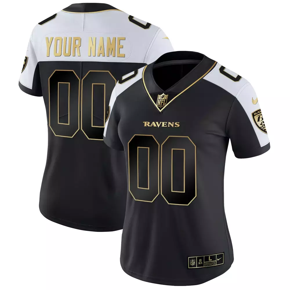 Baltimore Ravens Vapor Gold Custom Name and Number Jersey | Black Gold Edition | Stitched Fan Gear for Youth | For Men, Women & Youth;Baltimore Ravens Vapor Gold Custom Name and Number Jersey | Stitched Black Silver Design | Fan Gear for Men, Women & Youth;Baltimore Ravens Vapor Gold Custom Name and Number Jersey | Stitched Fan Gear for Men, Women & Youth;Baltimore Ravens Vapor Gold Custom Name and Number Jersey | Stitched Fan Gear for Women & Youth;Baltimore Ravens Vapor Gold Custom Name and Number Jersey for Women | Stitched Black Silver Design | Fan Gear for Women & Youth