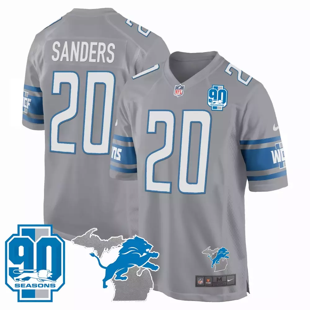 Barry Sanders Detroit Lions 90th Year Michigan Patch Game Jersey | Gray | All Stitched Fan Gear | For Men, Women & Youth;Barry Sanders Detroit Lions 90th Year Michigan Patch Game Jersey | Stitched | Limited Edition Fan Gear | For Men, Women & Youth;Barry Sanders Detroit Lions 90th Year Michigan Patch Game Jersey | Stitched Fan Gear for Men, Women & Youth;Barry Sanders Detroit Lions 90th Year Michigan Patch Vapor Jersey | Gray | All Stitched Fan Gear | For Men, Women & Youth;Barry Sanders Detroit Lions 90th Year Michigan Patch Vapor Jersey | Stitched | Game Day Outfit | For Men, Women & Youth