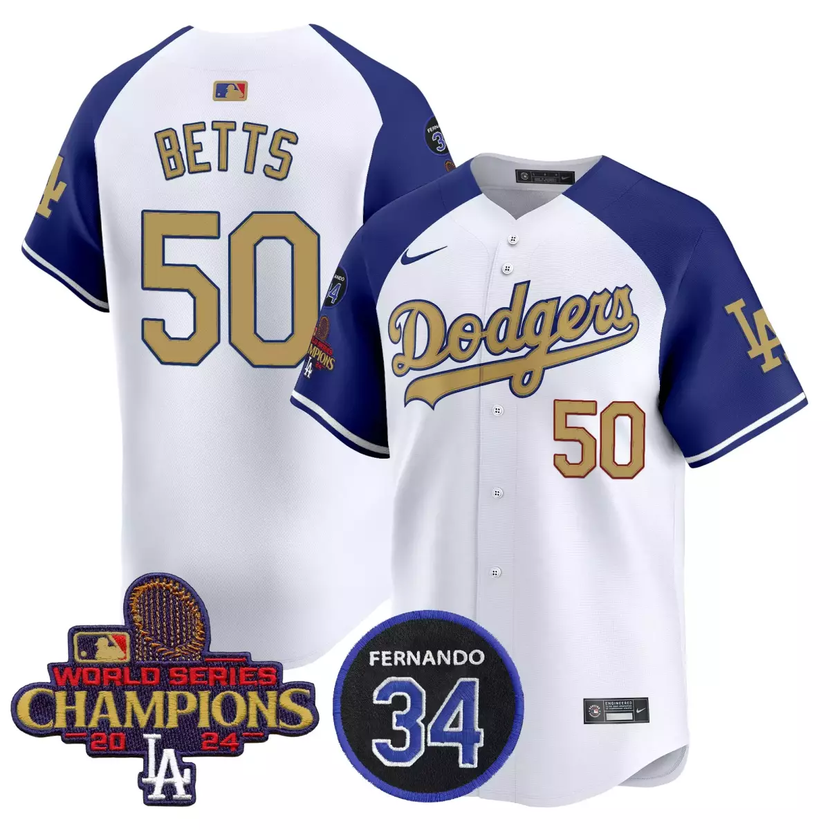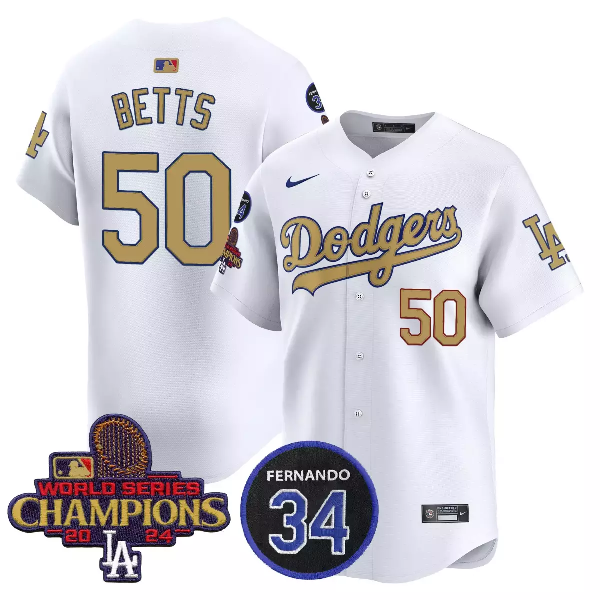 Betts Los Angeles Dodgers 2025 Gold Jersey | White Vapor Premier Limited Edition | For Men, Women & Youth;Betts Los Angeles Dodgers 2025 Gold Jersey | White Vapor Premier Limited Edition | For Men, Women & Youth;Betts Los Angeles Dodgers 2025 Gold Jersey | White Vapor Premier Limited Edition with 34 Fernando Patch | For Men, Women & Youth;Betts Los Angeles Dodgers 2025 Gold Jersey | White Vapor Premier Limited Edition with 34 Fernando Patch | For Men, Women & Youth;Betts Los Angeles Dodgers 2025 Gold Vapor Premier Jersey | Limited Edition Stitched Fan Gear | For Men, Women & Youth