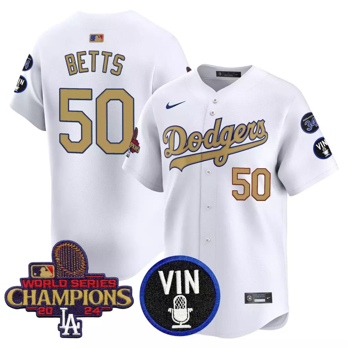 Betts Los Angeles Dodgers 2025 Vin Scully Black Gold Jersey | Limited Edition Premier Fan Gear | For Men, Women & Youth;Betts Los Angeles Dodgers 2025 Vin Scully Jersey | White Vapor Premier Limited Edition with 34 Fernando Patch | For Men, Women & Youth;Betts Los Angeles Dodgers 2025 Vin Scully Jersey | White Vapor Premier Limited Edition with 34 Fernando Patch | For Men, Women & Youth;Betts Los Angeles Dodgers Armed Forces Day Jersey | White Vapor Premier Limited Edition | Fan Gear for Men, Women & Youth;Betts Los Angeles Dodgers Black Gold Jersey | Fernando Valenzuela Memorial Patch | Limited Edition Premier Gear | For Men, Women & Youth