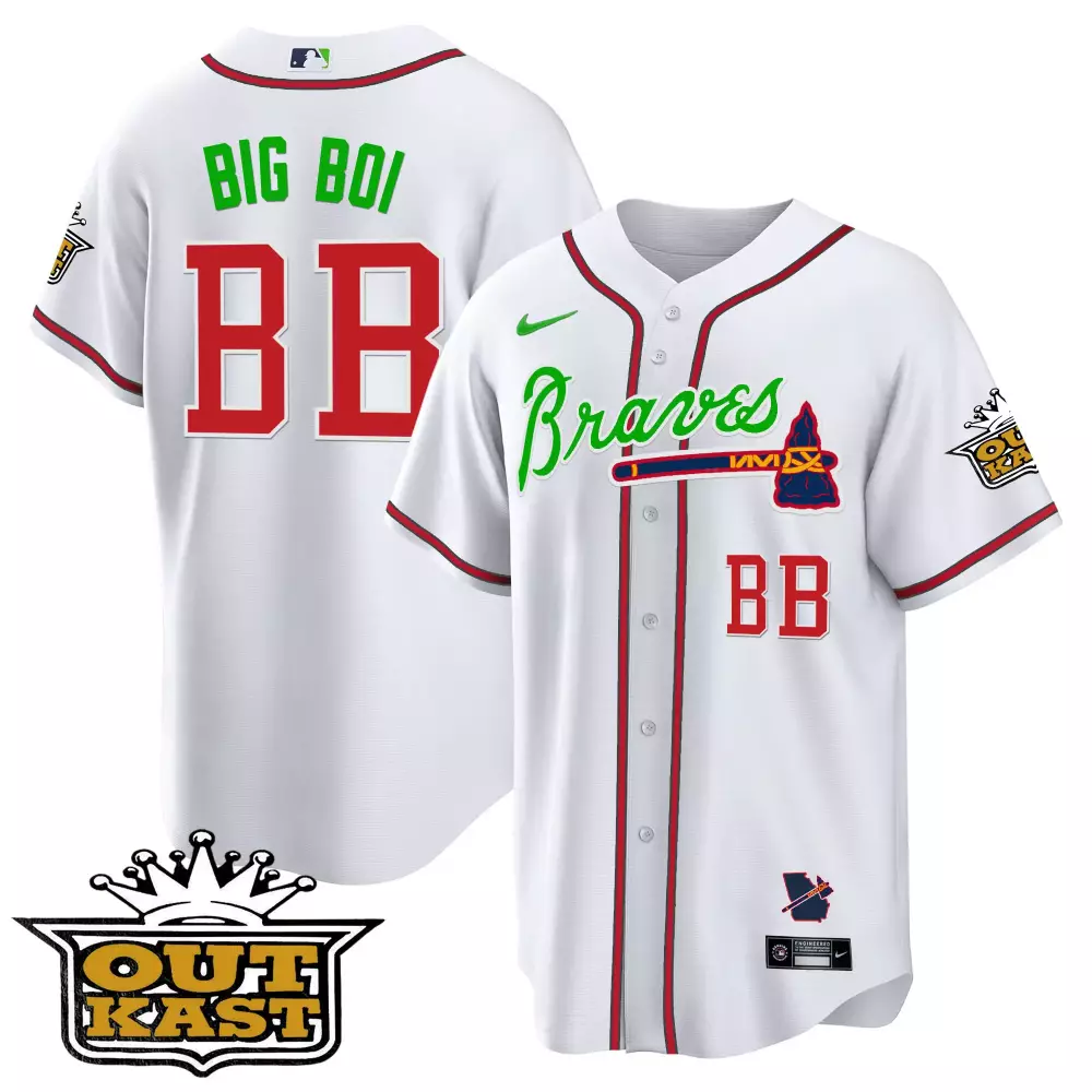 Big Boi Atlanta Braves Outkast Cool Base Jersey V2 | White | All Stitched Fan Gear for Men, Women & Youth