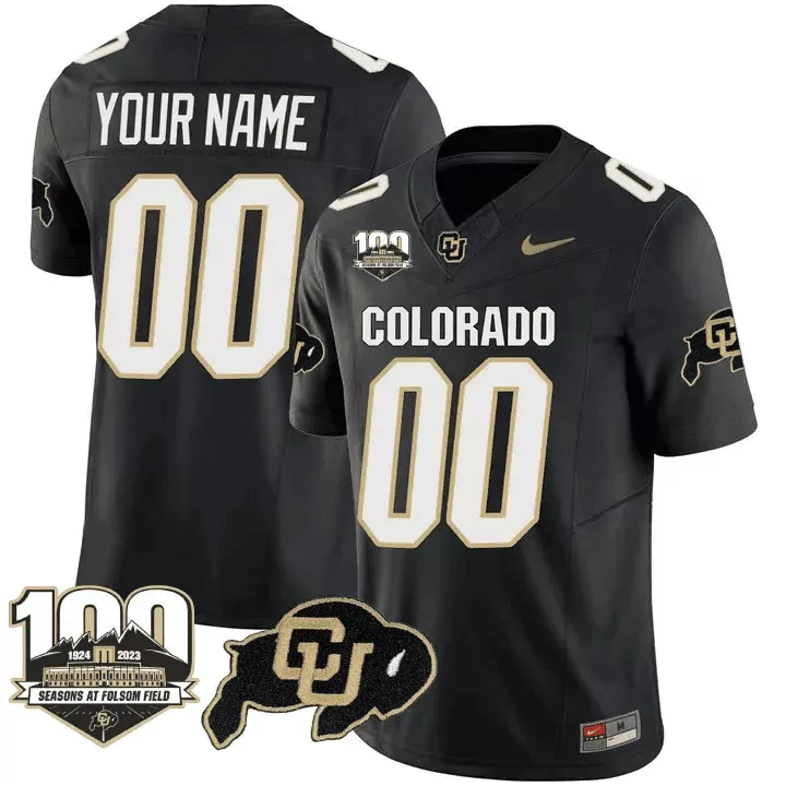 Black Colorado Buffaloes 100 Seasons Patch Vapor Limited Custom Jersey | Stitched Design | Fan Gear for Men, Women & Youth;Black Colorado Buffaloes 100th Seasons at Folsom Field Patch Vapor Limited Custom Jersey | Stitched Design | Fan Gear for Men, Women & Youth;Black Colorado Buffaloes 100th Seasons at Folsom Field Patch Vapor Limited Custom Jersey V2 | Stitched Design | Fan Gear for Men, Women & Youth;Black Colorado Buffaloes Arch Smoke Vapor Custom Jersey | Stitched Design | Fan Gear for Men, Women & Youth;Black Colorado Buffaloes Baseball Custom Jersey | Stitched Design | Fan Gear for Men, Women & Youth