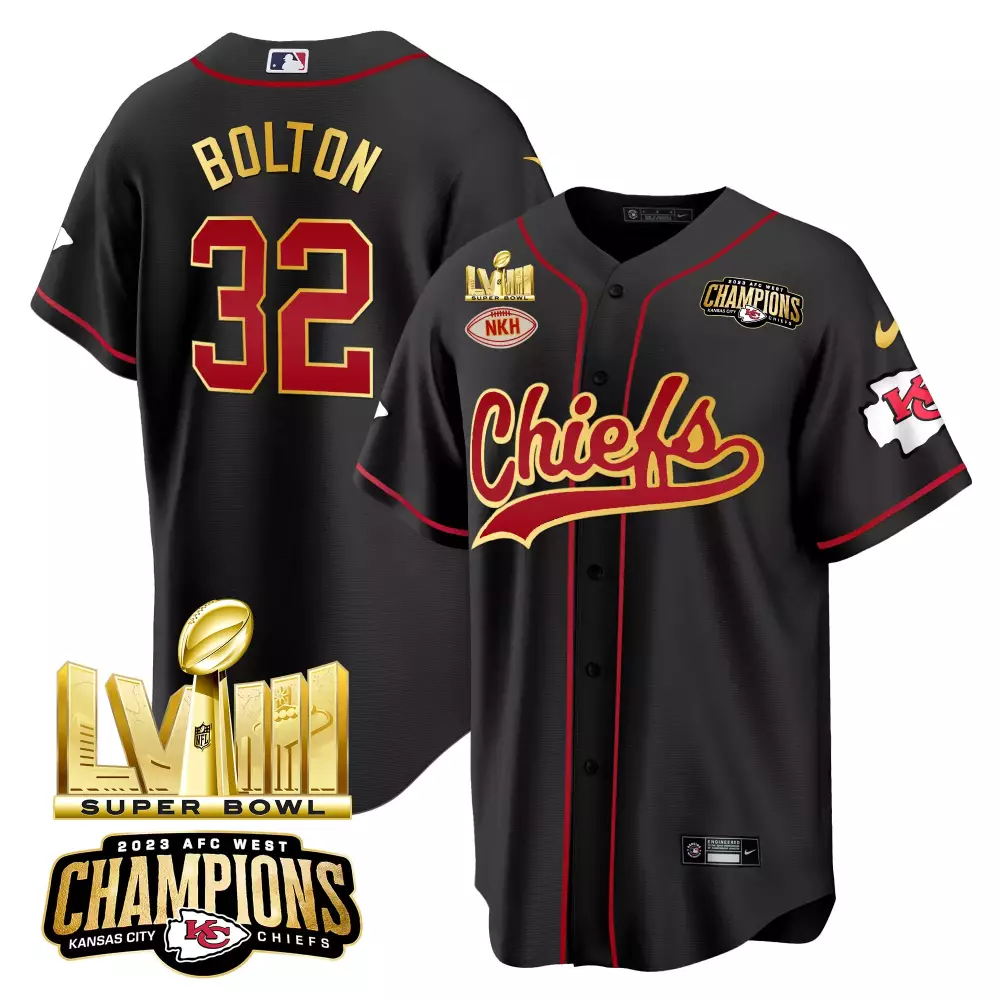 Bolton 32 Kansas City Chiefs 2023 Men’s All Stitched Vapor Jersey | Champions Edition Black | For Men, Women & Youth