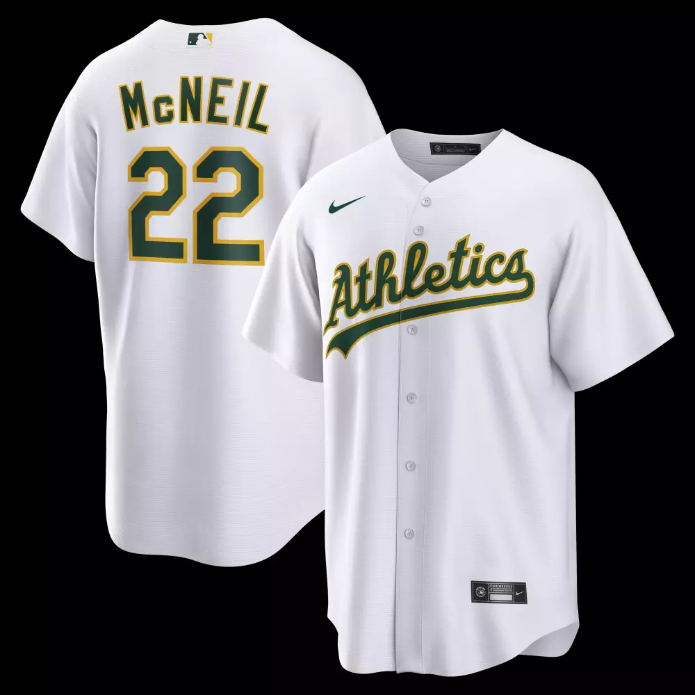 brent rooker athletics nike home limited player jersey white;denzel clarke athletics nike home replica jersey white;jacob wilson athletics nike home limited player jersey white;jeff mcneil athletics nike home replica jersey white;nick kurtz athletics nike home limited player jersey white
