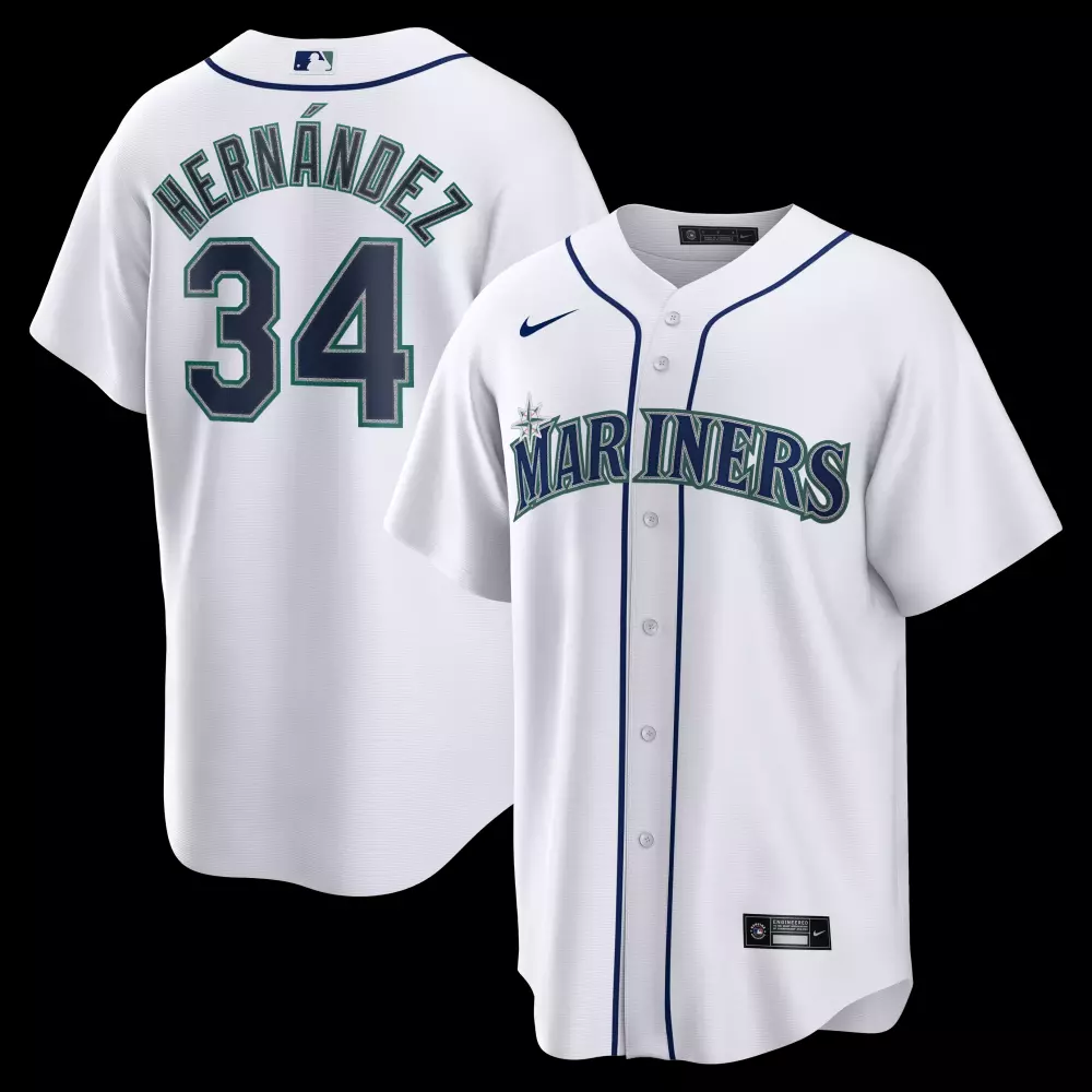 bryan woo seattle mariners nike home replica jersey white;cal raleigh seattle mariners nike alternate limited jersey teal;cal raleigh seattle mariners nike alternate limited jersey teal 1;cal raleigh seattle mariners nike home replica player jersey white;felix hernandez seattle mariners nike home retired player replica jersey white