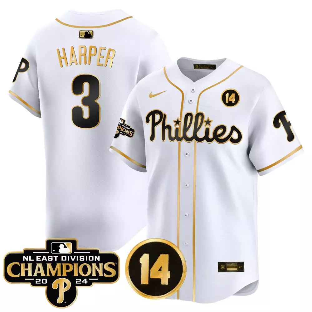 Bryce Harper Phillies 2024 NL East Division Champions Jersey | White Gold Vapor Premier | Limited Edition Fan Gear for Men, Women & Youth;Bryce Harper Phillies 2024 NL East Division Champions Jersey | White Gold Vapor Premier | Limited Edition Fan Gear for Men, Women & Youth;Bryce Harper Phillies 2024 NL East Division Champions Pete Rose Patch Jersey | White Gold Vapor Premier | Limited Edition Fan Gear for Men, Women & Youth;Bryce Harper Phillies 2024 NL East Division Champions Pete Rose Patch Jersey | White Gold Vapor Premier | Limited Edition Fan Gear for Men, Women & Youth;Bryce Harper Phillies 2024 NL East Division Champions Pete Rose Patch Jersey | White Gold Vapor Premier | Limited Edition Fan Gear for Women, Men & Youth