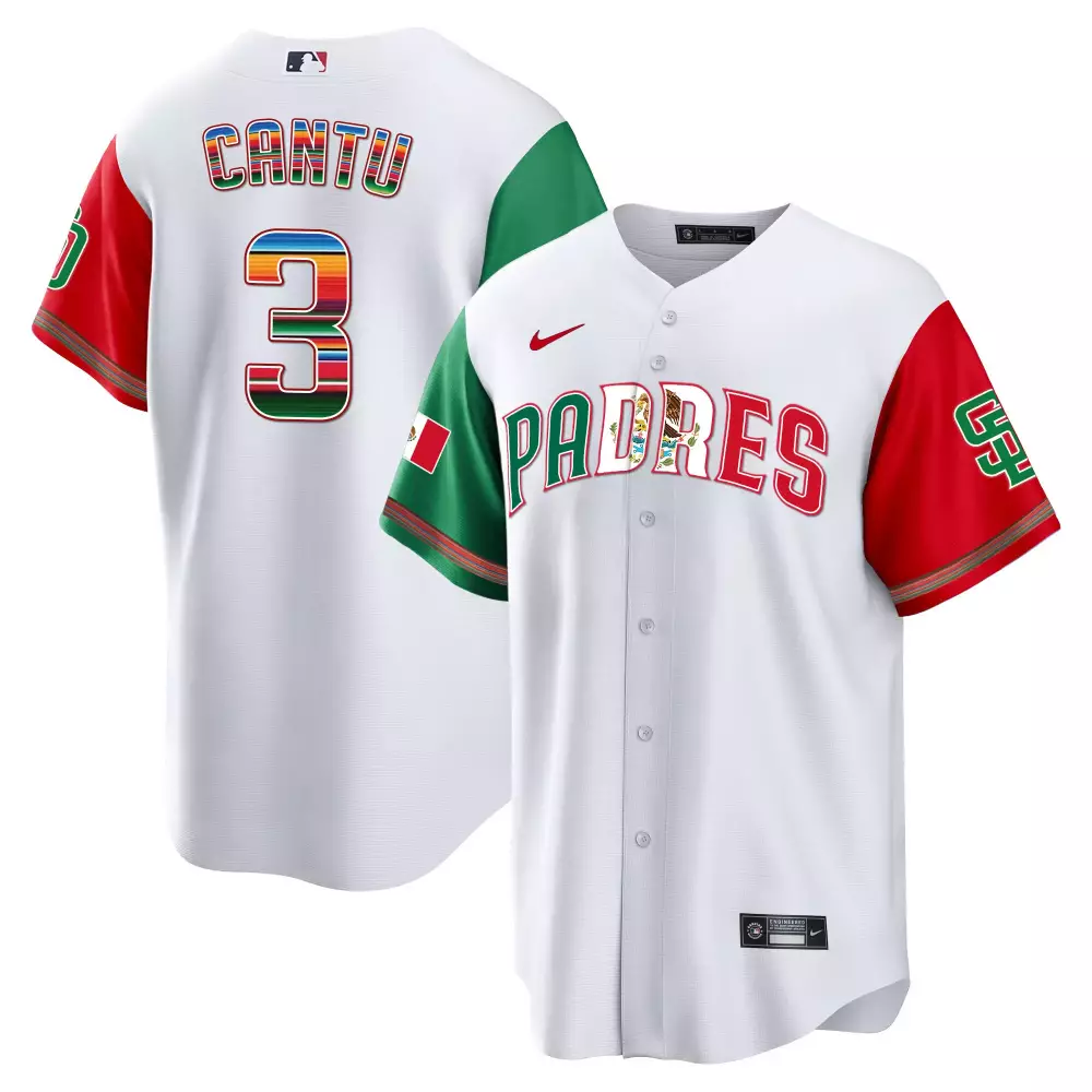 Cantu 3 Padres 2023 Stitched Vapor Jersey | White, Green & Red | Custom Fan Gear | For Men, Women & Youth