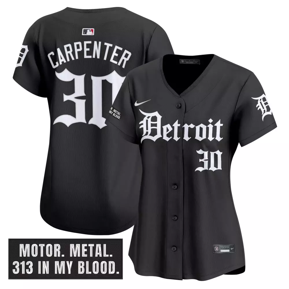 Carpenter 30 Women’s Detroit Tigers 2023 Black Vapor Jersey | Embroidered Patch | Stylish Fan Gear | For Women
