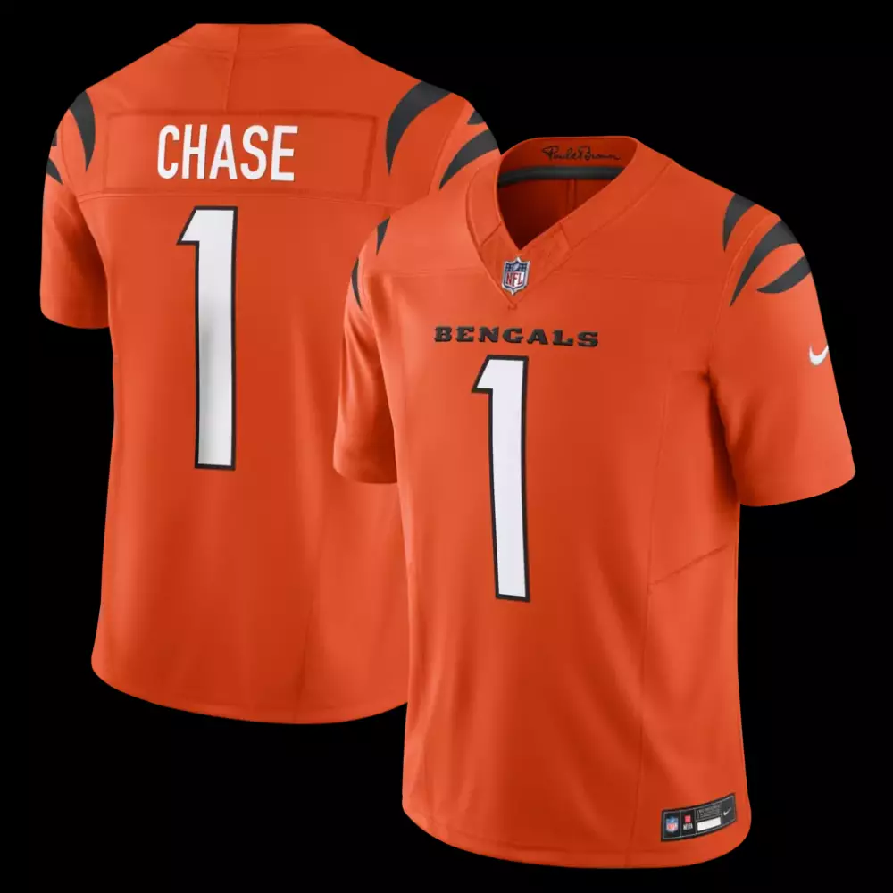 Chase Bengals 2025 Nike Alternate Game Jersey | Orange | Replica Fan Gear for Men, Women & Youth;Chase Bengals Nike Game Jersey | Black | Limited Edition Fan Gear for Men, Women & Youth;Chase Bengals Nike Vapor FUSE Elite Jersey | White | Game Day Outfit for Men, Women & Youth;Chase Bengals Nike Vapor FUSE Limited Jersey | Black | Fan Gear for Men, Women & Youth;Chase Bengals Nike Vapor FUSE Limited Jersey | Orange | Replica Fan Gear for Men, Women & Youth
