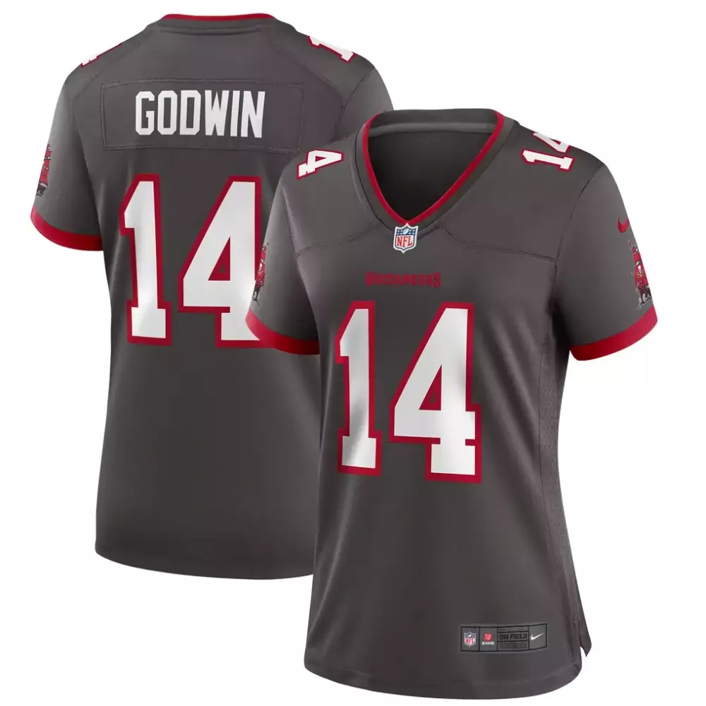 Chris Godwin Red Alternate Women’s Tampa Bay Buccaneers Florida Patch Jersey | Limited Edition Vapor Style | Fan Gear for Women & Youth;Chris Godwin Red Men’s Tampa Bay Buccaneers 2023 NFC South Champions Jersey | Game Day Style | Fan Gear for Men, Women & Youth;Chris Godwin Red Men’s Tampa Bay Buccaneers 2023 NFC South Champions Jersey | Gold Trim Vapor Style | Fan Gear for Men, Women & Youth;Chris Godwin Tampa Bay Buccaneers 2023 Alternate Game Jersey | Pewter Nike Style | Replica Fan Gear for Men, Women & Youth;Chris Godwin Tampa Bay Buccaneers 2023 Alternate Legend Top | Pewter Nike Performance | Fan Gear for Men, Women & Youth