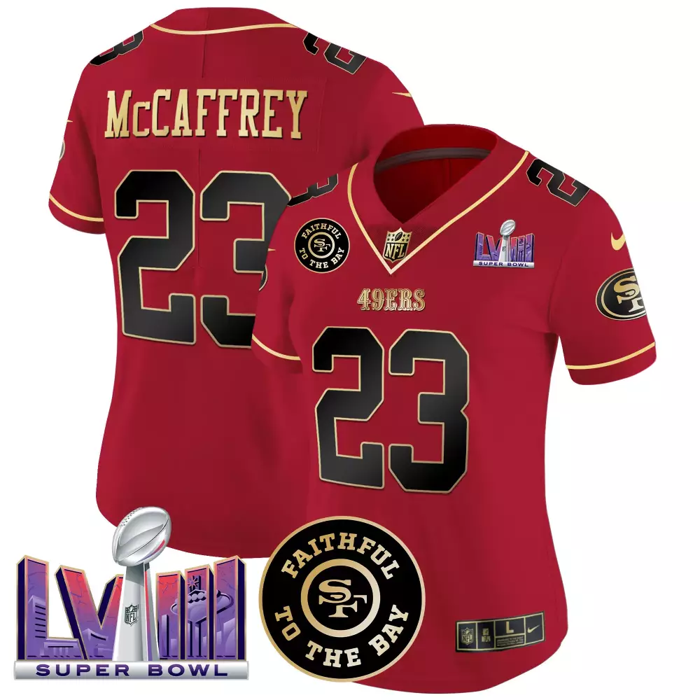 Christian McCaffrey Scarlet Limited Women’s 49ers Vapor Jersey | Golden Gate Bridge Patch | Limited Edition Fan Gear | For Men, Women & Youth;Christian McCaffrey Scarlet Limited Women’s 49ers Vapor Jersey | Levis Stadium 10th Season Patch | Game Day Outfit | For Men, Women & Youth;Christian McCaffrey Scarlet Limited Women’s 49ers Vapor Jersey | Super Bowl LVIII Patch | Fan Gear for Game Day | For Men, Women & Youth;Christian McCaffrey Scarlet Limited Youth’s 49ers Vapor Jersey | Golden Gate Bridge Patch | Fan Gear for Game Day | For Men, Women & Youth;Christian McCaffrey Split Men’s 49ers Vapor Jersey | Super Bowl LVIII Patch | All Stitched Fan Gear | For Men, Women & Youth