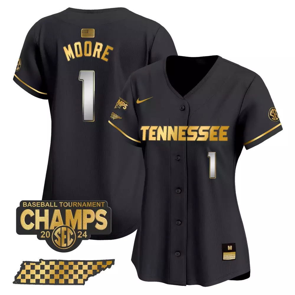 Christian Moore Tennessee Volunteers 2024 Tournament Champions Vapor Premier Limited Jersey | Black Gold Stitched Style | For Men, Women & Youth