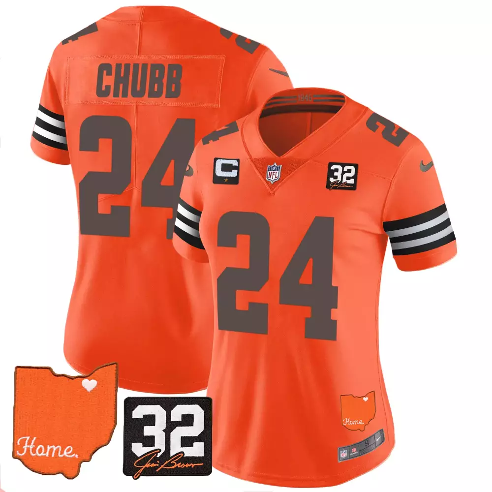 Chubb 24 Cleveland Browns Women’s Black Jersey 2023 | Stitched with Memorial Patches | Fan Gear for Game Day | For Men, Women & Youth;Chubb 24 Cleveland Browns Women’s Brown Jersey 2023 | Stitched Vapor Home Patch | Perfect Fan Gear for Game Day | For Men, Women & Youth;Chubb 24 Cleveland Browns Women’s Orange Jersey | 2023 Stitched Edition | Perfect for Game Day | For Men, Women & Youth;Chubb 24 Cleveland Browns Women’s Orange Jersey | 2023 Stitched Edition with Memorial Patch | Perfect Fan Gear | For Men, Women & Youth;Chubb 24 Cleveland Browns Women’s Orange Jersey | Stitched Edition with 32 Memorial Patch | Ideal Fan Gear for All | For Men, Women & Youth