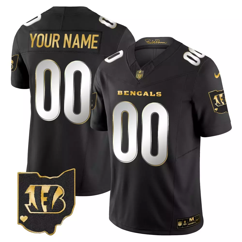 Cincinnati Bengals Black Jersey with Custom Name & Number | 513 Claws Patch | Stylish NFL Apparel | For Men, Women & Youth;Cincinnati Bengals Black Limited Custom Jersey | Ohio Patch Vapor Gold Design | All Stitched Fan Gear | For Men, Women & Youth;Cincinnati Bengals Black Limited Youth Custom Jersey | Ohio Patch Vapor Gold Design | All Stitched Fan Gear | For Men, Women & Youth;Cincinnati Bengals Black Men’s 2024 Game Custom Jersey | All Stitched Design | Authentic Fan Gear | For Men, Women & Youth;Cincinnati Bengals Black Men’s 2024 Vapor Limited Custom Jersey | All Stitched Design | Authentic Fan Gear | For Men, Women & Youth