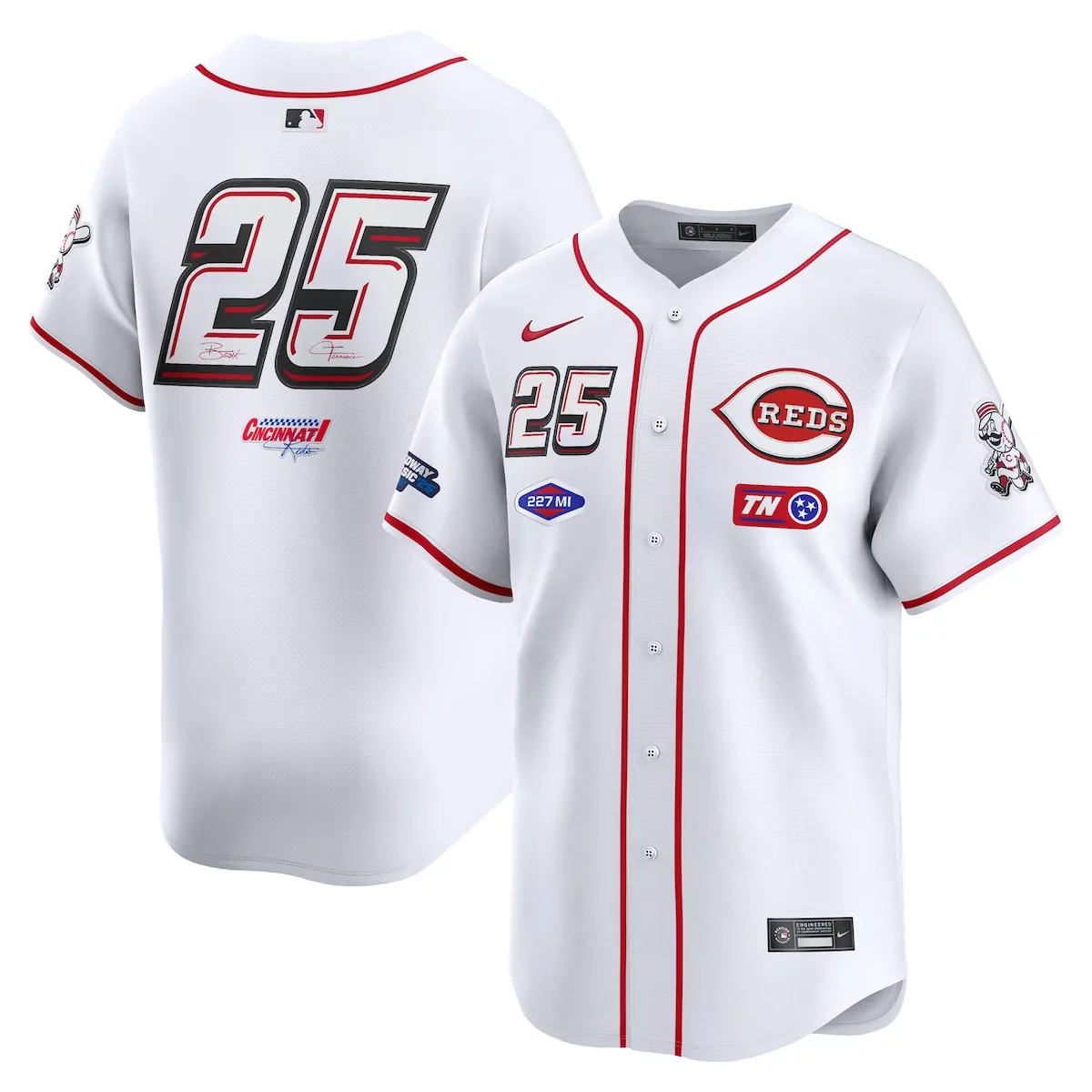 Cincinnati Reds 25 White 2025 MLB Speedway Classic Home Jersey | Fan Gear for Game Day | For Men, Women & Youth
