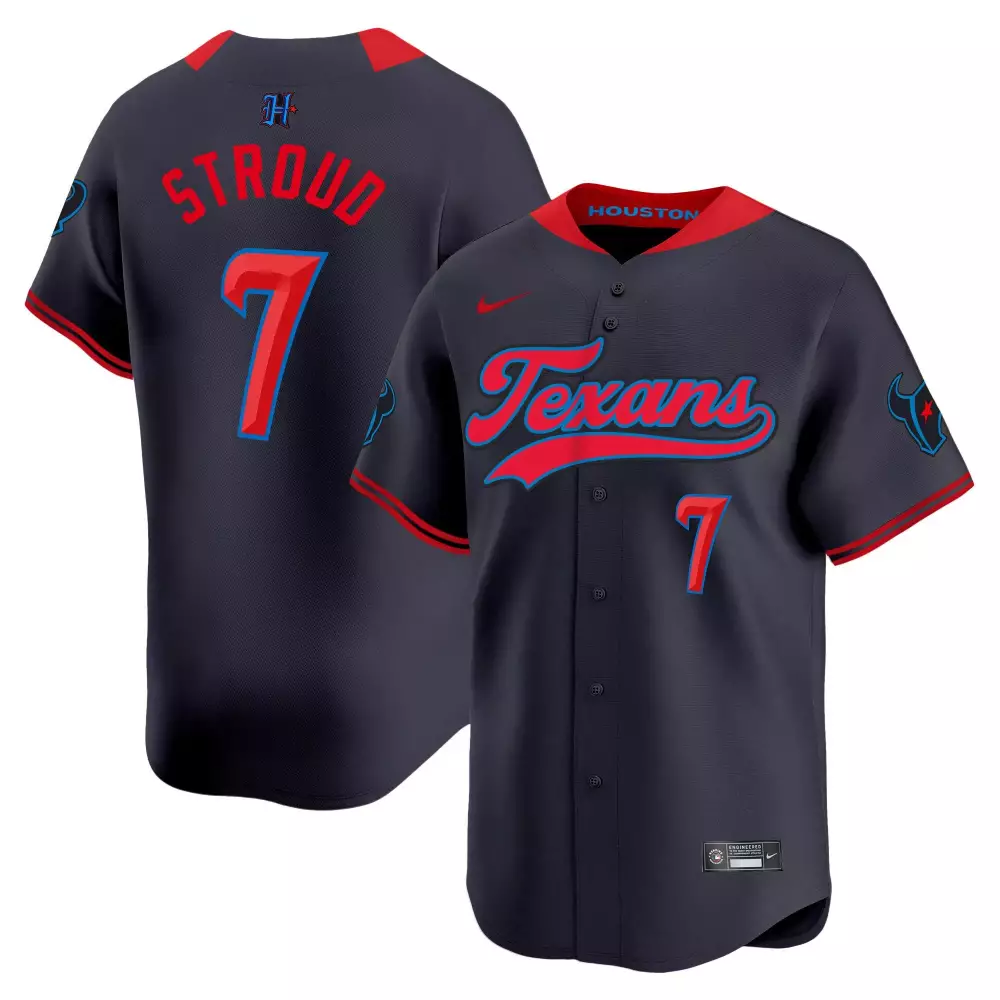 CJ Stroud Houston Texans Men’s Navy Limited Baseball Jersey | All Stitched | Game Day Outfit for Men, Women & Youth