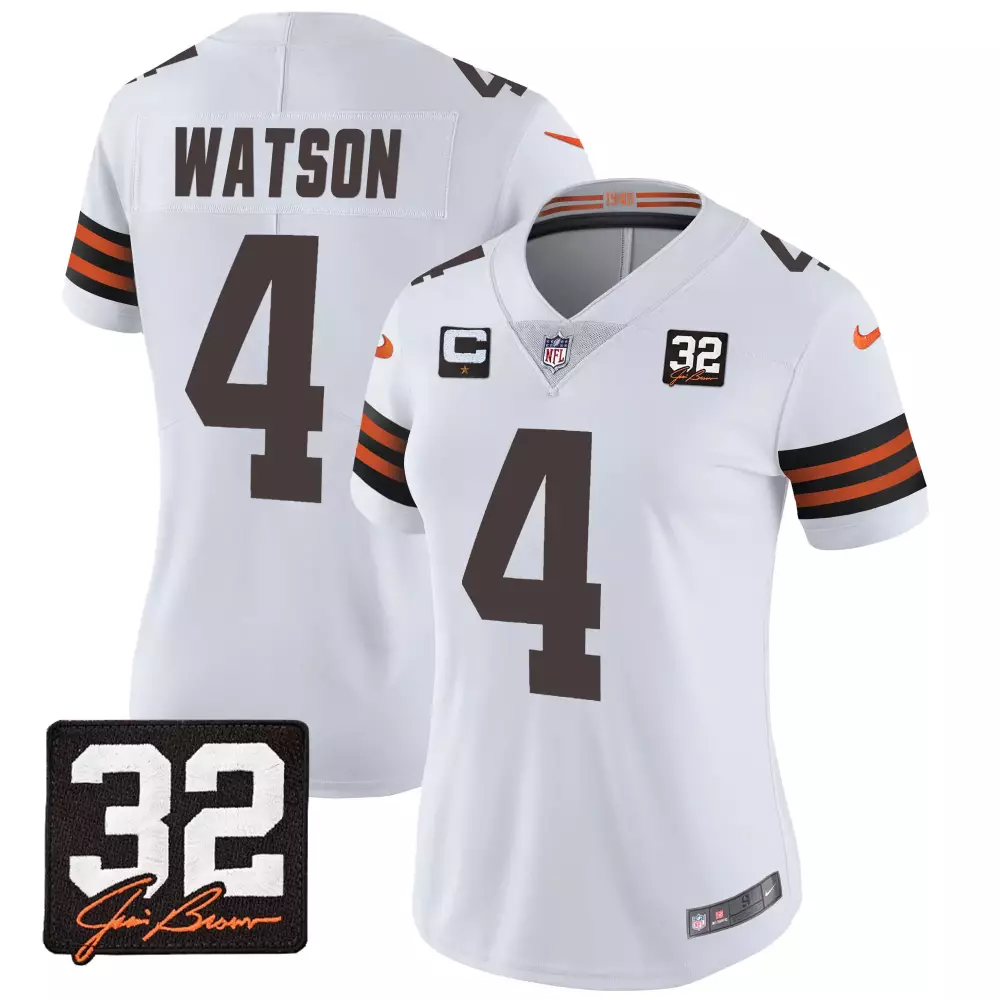 Cleveland Browns 4 Watson Women’s White Stitched Vapor Jersey | All Stitched 2023 Memorial Patch | Fan Gear for Game Day | For Men, Women & Youth
