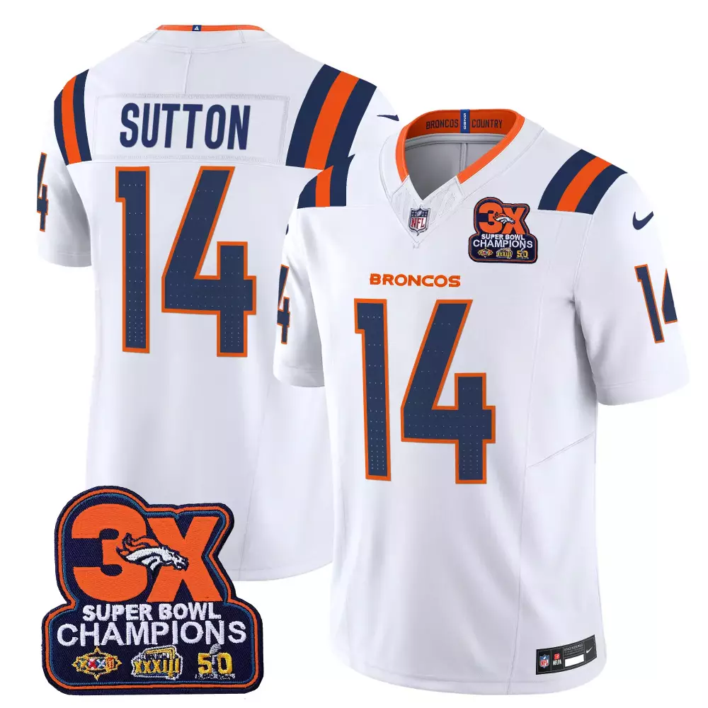 Courtland Sutton Denver Broncos White Men’s Jersey | 3-Time Champions Patch Vapor Limited | Stitched Fan Gear for Men, Women & Youth