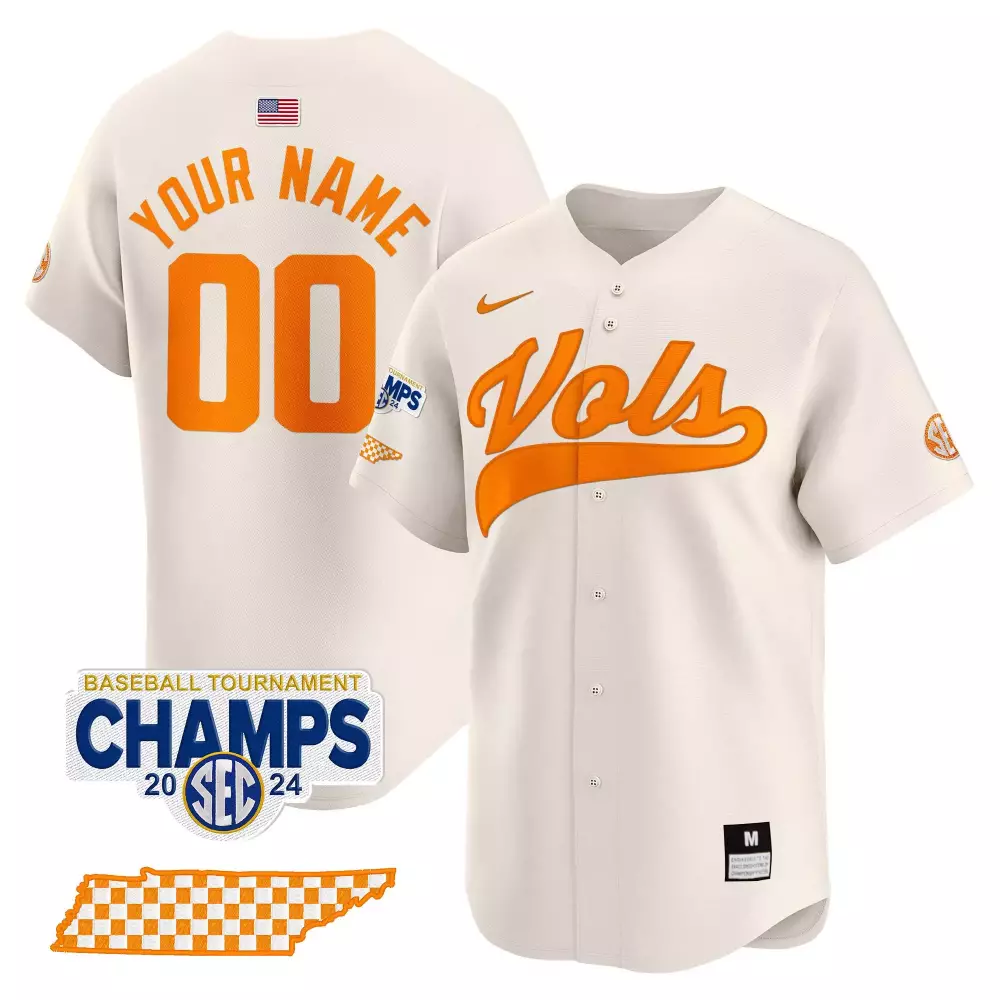 Cream Men’s Tennessee Volunteers 2024 Tournament Champs World Series Vapor Premier Limited Custom Jersey | Stitched | Fan Gear for Game Day | For Men, Women & Youth