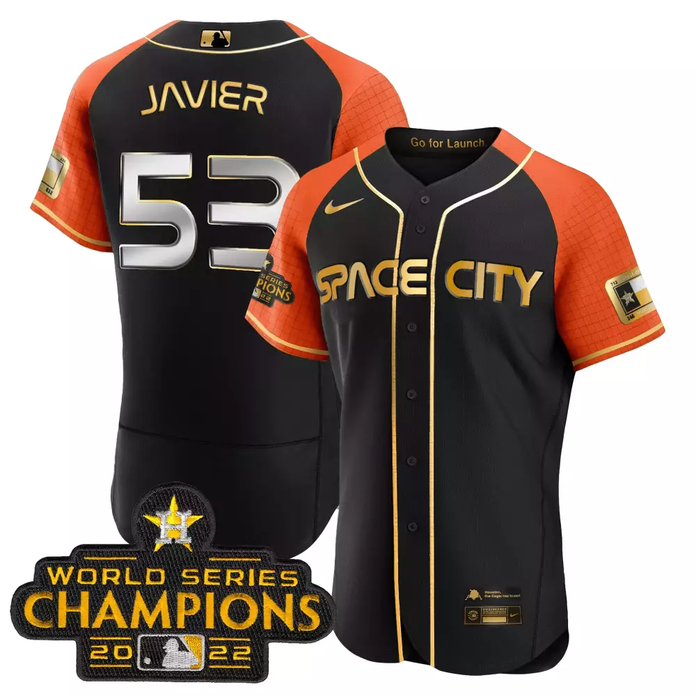 Cristian Javier Astros 2023 Black Gold Youths Space City Champions Flex Jersey | Stitched Style | Limited Edition Fan Gear for Youth