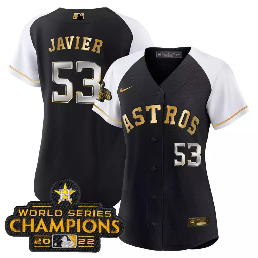 Cristian Javier Astros 2023 Black Gold Youths Space City Champions Flex Jersey | Stitched Style | Limited Edition Fan Gear for Youth;Cristian Javier Astros 2023 Gold Cool Base Collection Jersey | Stitched Alternate Style | Replica Fan Gear for Youth;Cristian Javier Astros 2023 Gold Rush Collection Jersey | Stitched Alternate Style | Replica Fan Gear for Women;Cristian Javier Astros 2023 Space City Champions Cool Jersey | Stitched Alternate Style | Replica Fan Gear for Men, Women & Youth;Cristian Javier Astros 2023 Space City Champions Flex Jersey | Stitched Alternate Style | Limited Edition Fan Gear for Men, Women & Youth