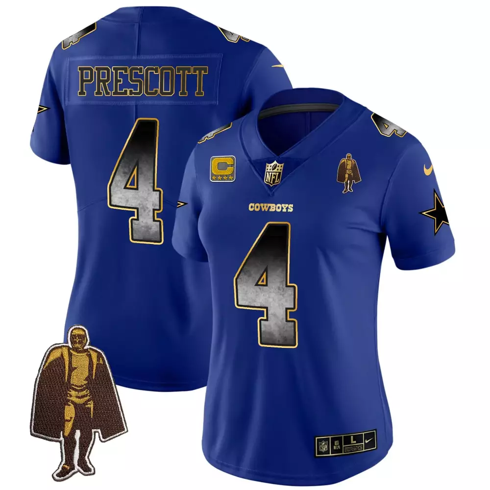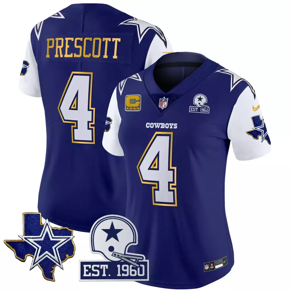 Dak Prescott Royal Women’s Dallas Cowboys 2023 NFC East Champions Patch Vapor Jersey | All Stitched | For Men, Women & Youth | Fan Gear;Dak Prescott Royal Women’s Dallas Cowboys Arch Smoke Vapor Jersey | All Stitched | For Men, Women & Youth | Game Day Outfit;Dak Prescott Royal Women’s Dallas Cowboys Texas John Madden Patch Gold Trim Vapor Jersey | All Stitched | For Men, Women & Youth | Limited Edition;Dak Prescott Royal Women’s Dallas Cowboys Texas John Madden Patch Vapor Jersey | All Stitched | For Men, Women & Youth | Fan Gear;Dak Prescott Royal Women’s Dallas Cowboys Texas Patch Gold Trim Vapor Jersey | All Stitched | For Men, Women & Youth | Limited Edition