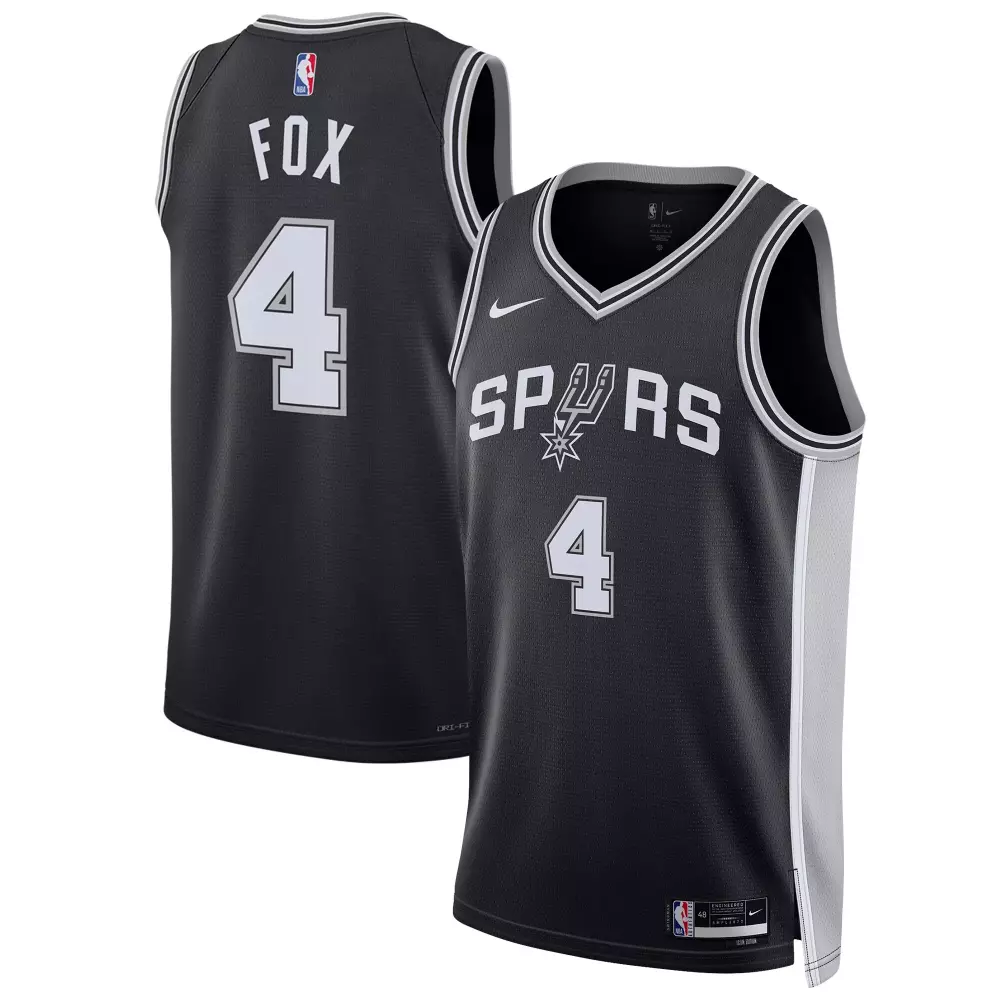 de aaron fox san antonio spurs fanatics fast break jersey statement edition silver;de aaron fox san antonio spurs fanatics fast break replica player jersey icon edition black;de aaron fox san antonio spurs nike unisex 2025 26 swingman jersey black city edition;de aaron fox san antonio spurs nike unisex swingman player jersey icon edition black;dylan harper san antonio spurs fanatics 2025 nba draft first round pick fast break replica jersey icon edition black
