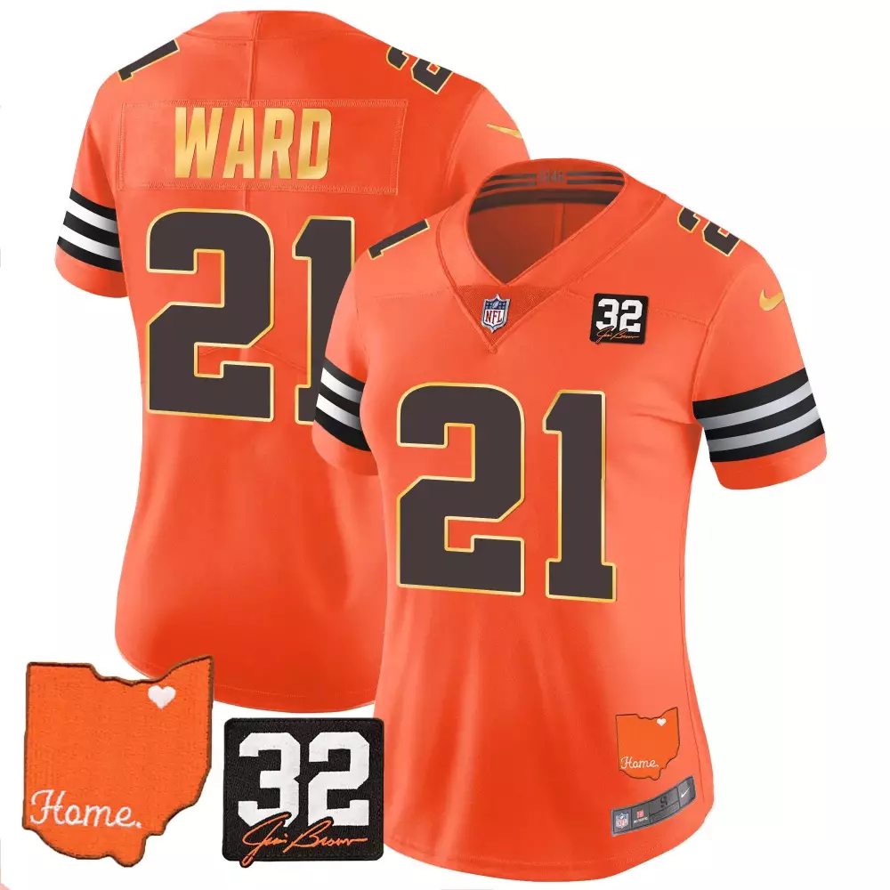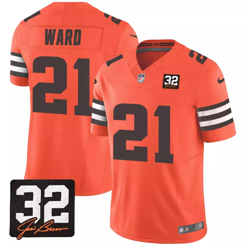 Denzel Ward Orange Men’s Cleveland Browns 32 Jim Brown Memorial Jersey | Stitched Home Patch V3 | For Men, Women & Youth;Denzel Ward Orange Men’s Cleveland Browns 32 Jim Brown Memorial Jersey | Stitched Patch | For Men, Women & Youth;Denzel Ward Orange Men’s Cleveland Browns 32 Jim Brown Memorial Vapor Limited Jersey | Stitched V2 | For Men, Women & Youth;Denzel Ward Orange Women’s Cleveland Browns 1946 Jersey | Stitched 75th Anniversary Fan Gear | For Men, Women & Youth;Denzel Ward Orange Women’s Cleveland Browns 32 Jim Brown Memorial Jersey | Stitched Gold Trim Fan Gear | For Men, Women & Youth