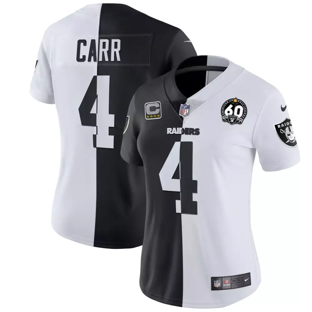 Derek Carr Split Gold Women’s Las Vegas Raiders 60th Season Patch Jersey | All Stitched Fan Gear | For Women, Men & Youth