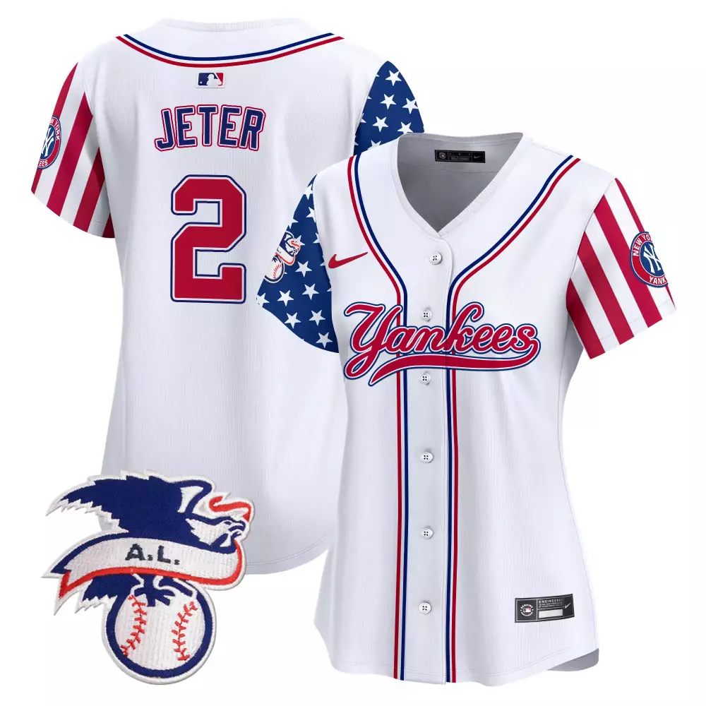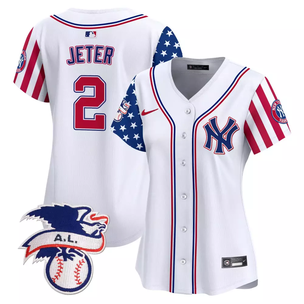 Derek Jeter Yankees 2024 Fourth of July Vapor Premier Limited Jersey V2 | White Stitched Women’s Fan Gear | For Men, Women & Youth